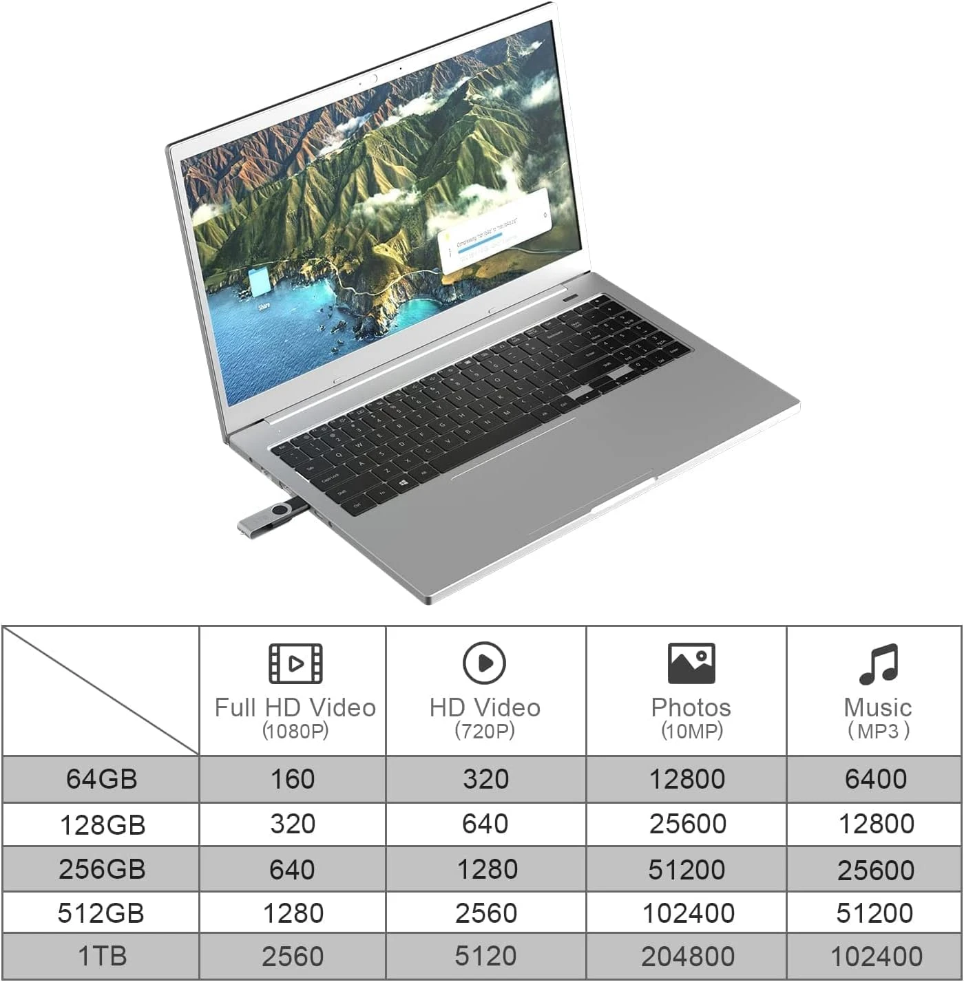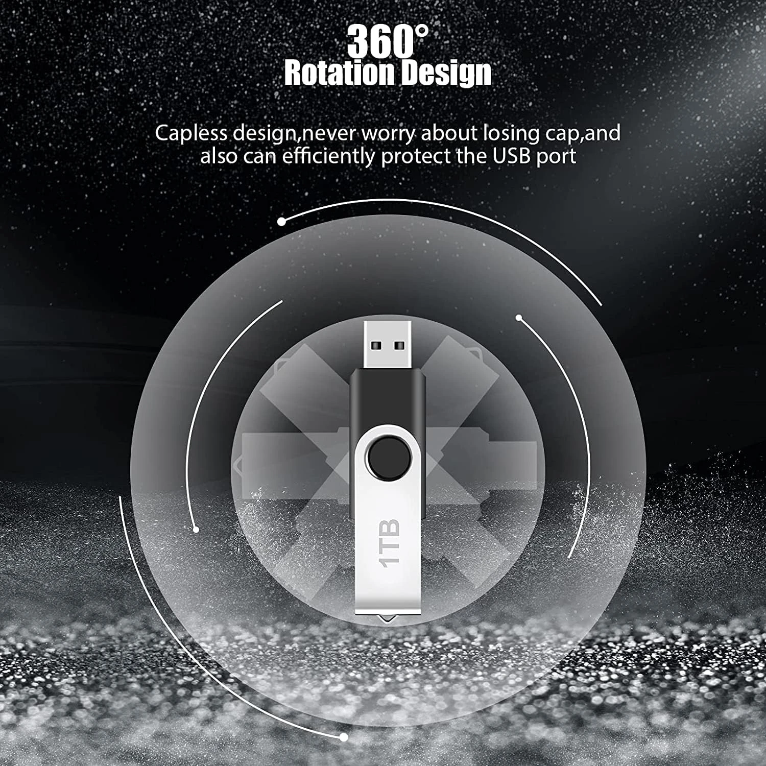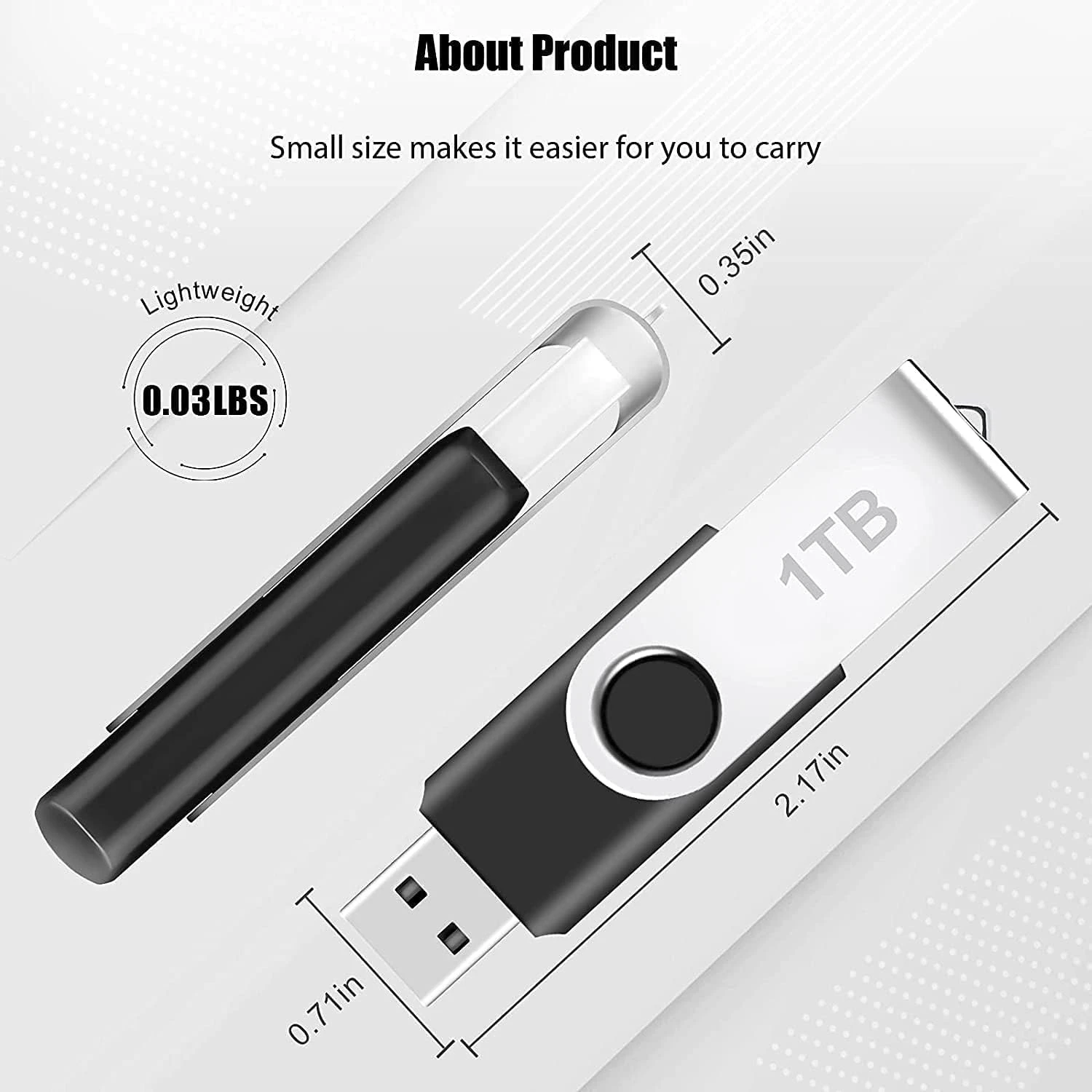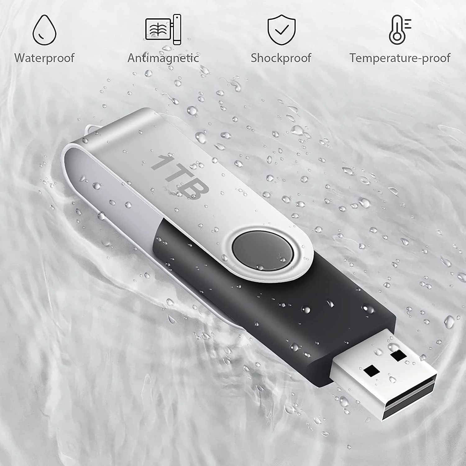- High Quality – USB Flash Drive 1TB features durable and rugged ABS and Metal housing body with rotated design. The inside uses the most advanced imported smart chip, assembled through many complicated and strict processes. Therefore, it has excellent water resistance, magnetic resistance, high-temperature resistance, and X-ray resistance, thus ensuring that its service life far exceeds other similar products, which makes you store your data with more confidence.