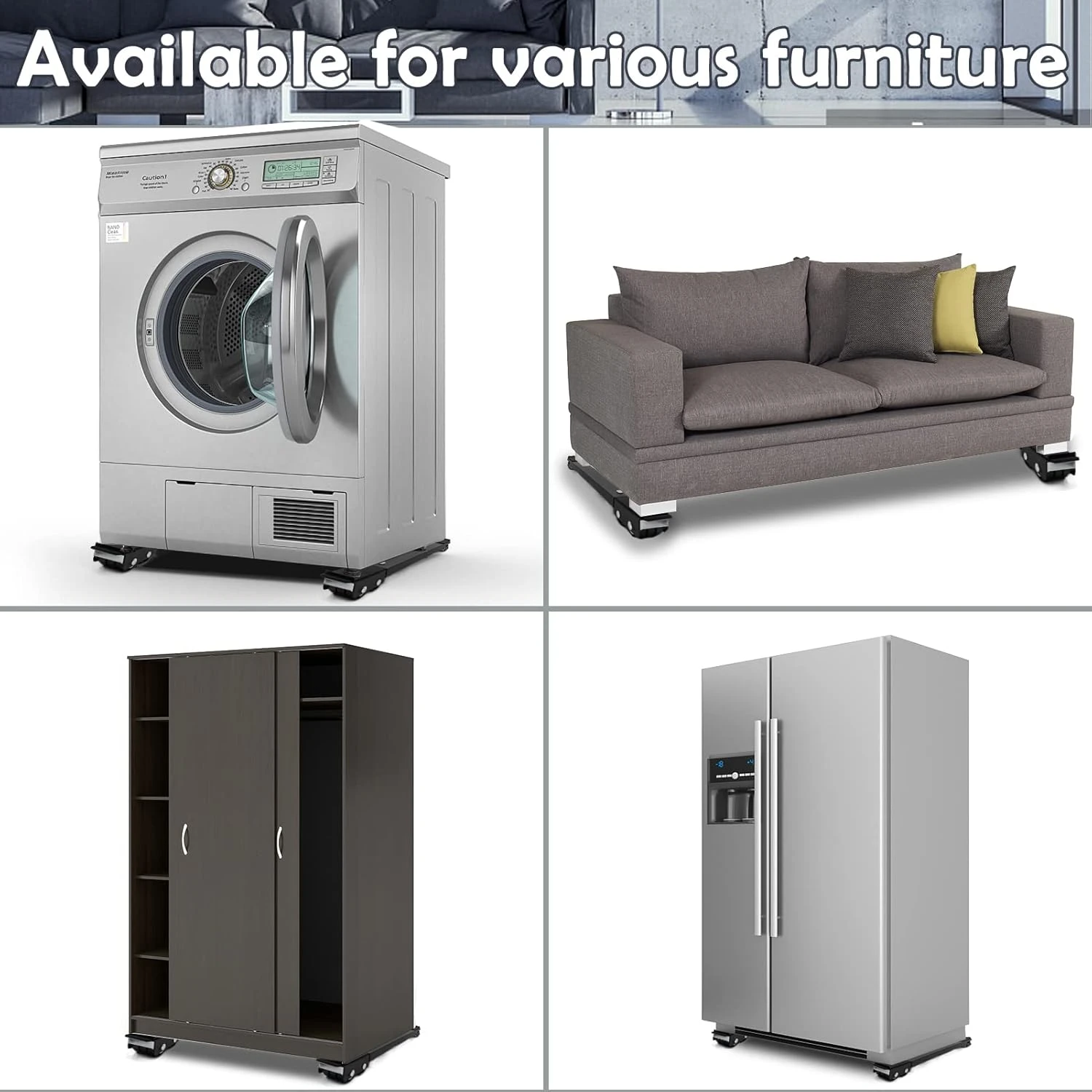 - WIDE RANGE OF USING APPLIANCE: 360° universal wheel appliances moving brackets, can be used on the base of all kinds of furniture appliances so that they can save power, you will no longer have to lift them very hard and move the furniture easier by yourself when you are cleaning or moving house.