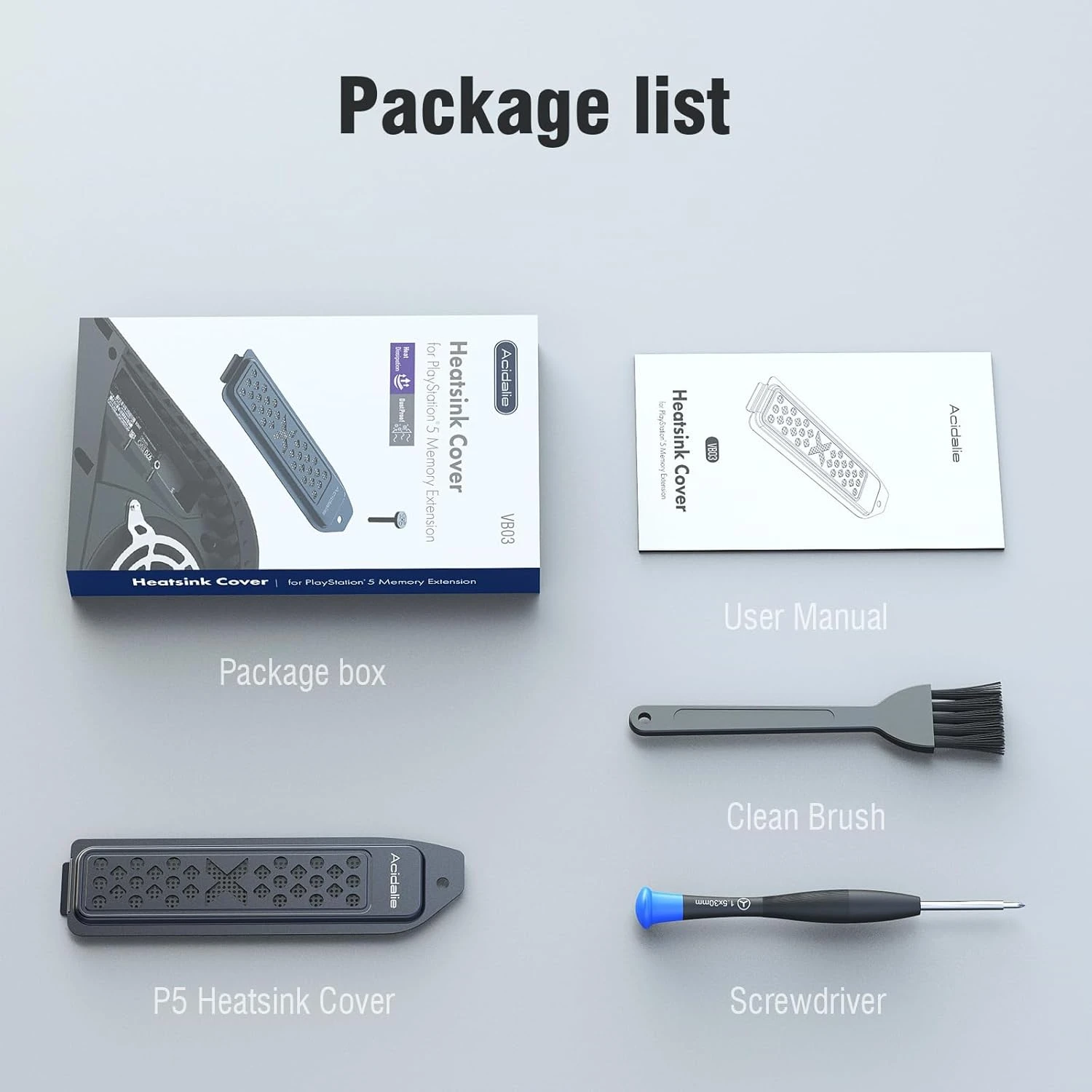 - [Package Contents]- PS5 M.2 Heatsink Cover, Screwdriver, Cleaning Brush, User Manual