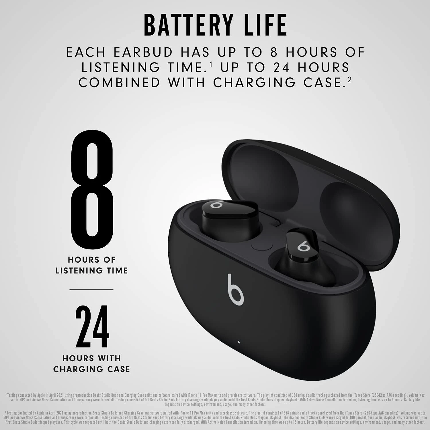 | Power and Battery | Beats Studio Buds (single charge): up to 8 hours of listening time. Fast Fuel: a 5-minute charge provides up to 1 hour of playback. |