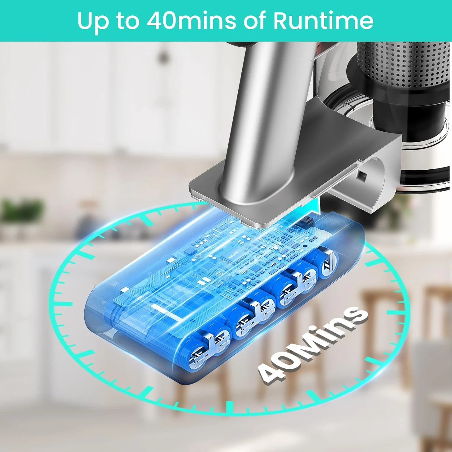 | Special Feature | ❤93000RPM Brushless Motor; ❤22KPA Fade-Free Suction; ❤13-40 Mins Running time; ❤Extensible Metal Tube; ❤Less hair-tangle brush; ❤Extra 2*HEPA Filters; ❤Washable Filter&Strainer; ❤175°Rotatable Brush Head; ❤0.8L Dustbin & Easy-to-Empty; ❤6-in-1 Stick & Handheld Vacuum; |