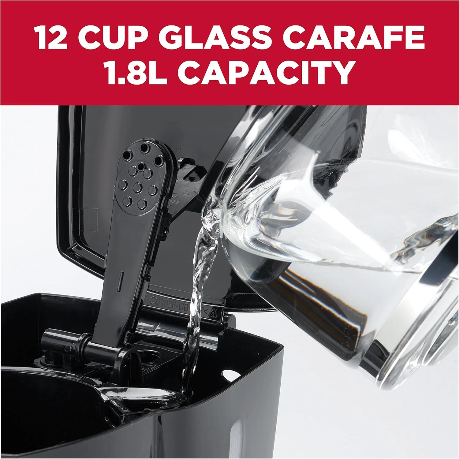 - UP TO 12 CUPS OF COFFEE: The included heat resistant glass carafe holds, pours and serves up to 12 cups of coffee. Perfect for large families or family gatherings and serving guests.
