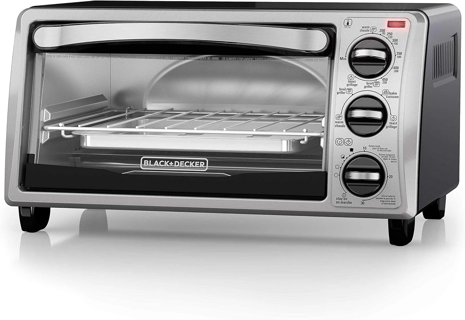 - Four Functions – The stainless steel toaster oven’s cooking functions include: baking, broiling, toasting, and keeping food warm