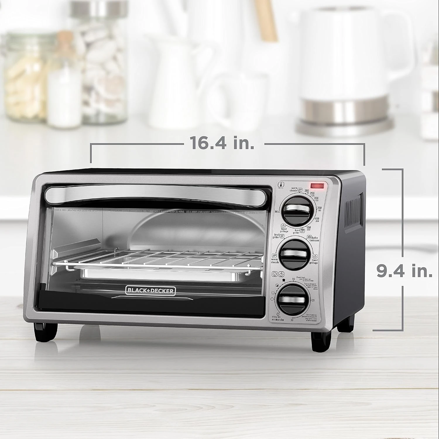 - 9” Pizza, 4 Slices of Bread – The compact toaster oven fits nicely on the countertop, while the curved interior makes room for 9” pizzas and 4 slices of bread.