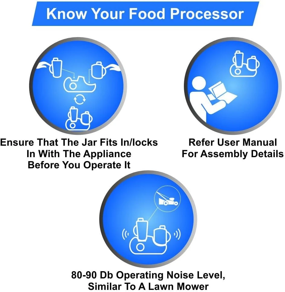 - Safety Interlocking System – Blades operate only when the lid is securely attached to the bowl