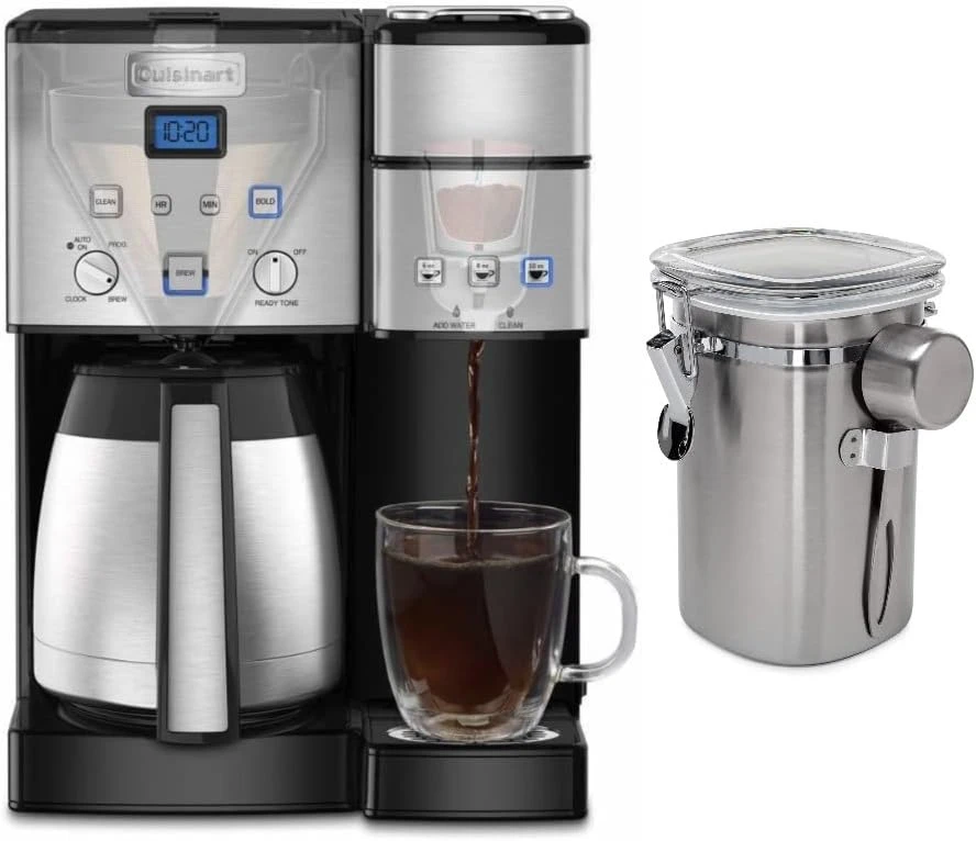 - Bundle Includes: Cuisinart Coffee Center 10-Cup Coffeemaker and Single-Serve Brewer and ChefWave Stainless Steel Coffee Canister with Co2 Valve Date Tracker 17.6oz