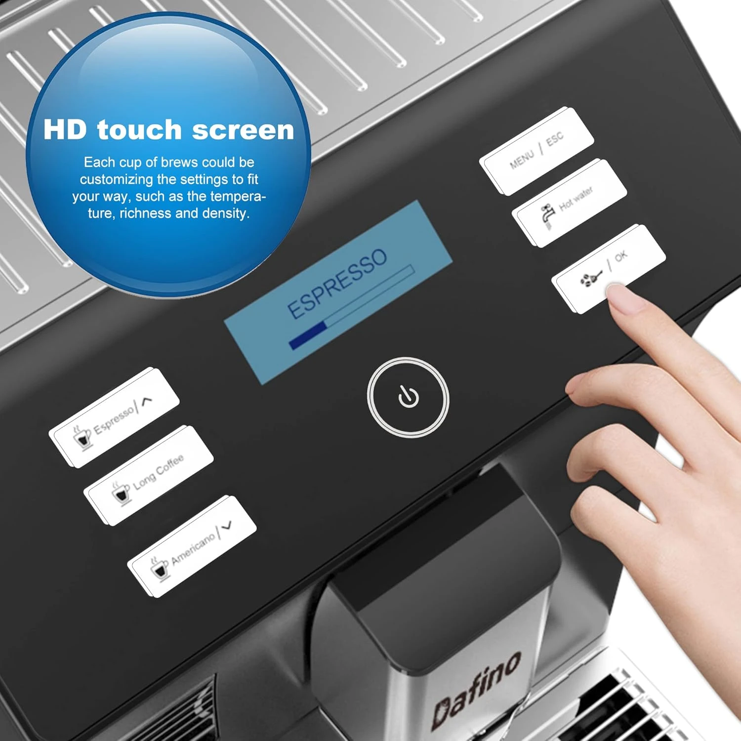 - LCD 2.5 INCH HD TOUCH SCREEN: The LCD touch screen offers a best experience with highly customization, coffee bean and powder dual use, and in just 3 easy steps you can make the flavored coffee you like. You can set the coffee temperature, coffee volume, coffee strength or the number of coffee beans to suit your taste.