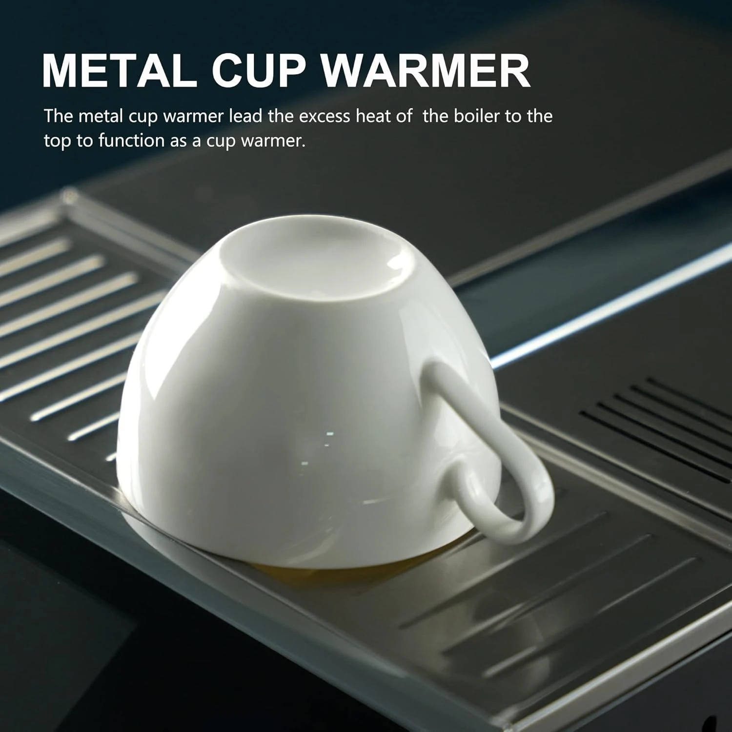 - HIGHLY HUMANIZED DESIGN FOR CONVENIENCE: The coffee machine is equipped with a metal cup warmer which can lead the excess heat of the boiler to the top. There are lights at the coffee outlet, which is convenient for use in low-light environments, and the height of the coffee outlet can be adjusted according to the cup type, effectively preventing coffee dripping.