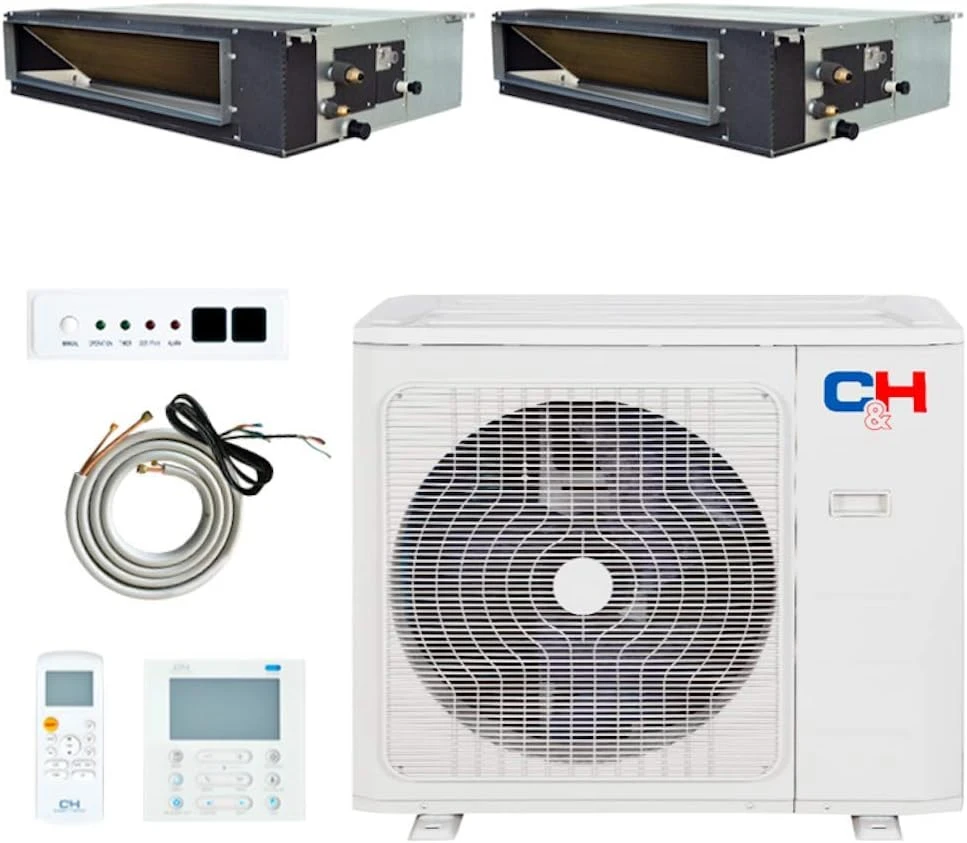 - Cooper&Hunter Sophia Series 28,000 BTU Multi Zone Outdoor Condenser 22.5 SEER, 230V, with (2) Concealed Duct Air Handlers 12,000 + 18,000 BTU