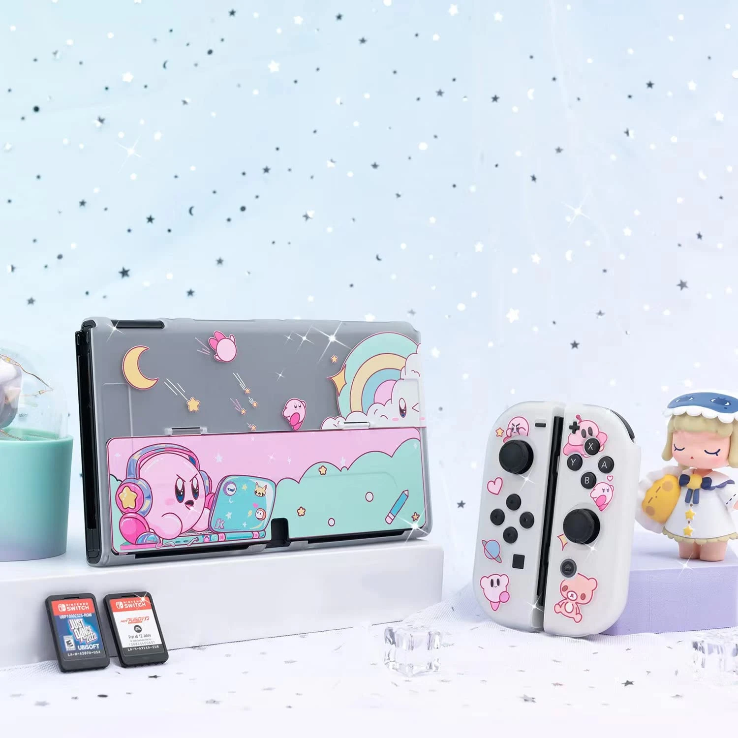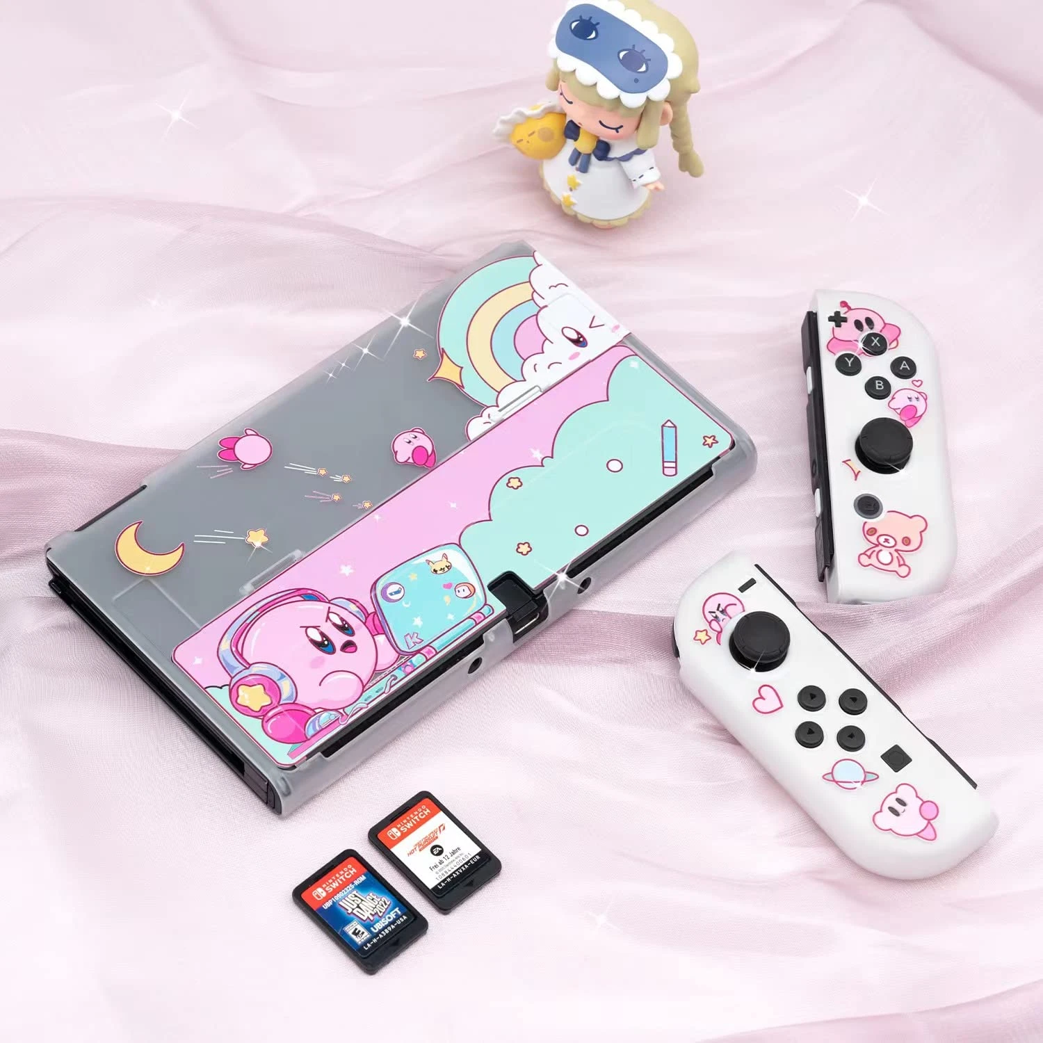 - [What you get] Protection Kit – 1 x Switch OLED Console Cover, 2 x TPU Housing for Joycons, The delicate pattern is cute and eye-catching, getting rid of the monotonous clear case and solid color case, this case is a great gift for girls, friends and family.