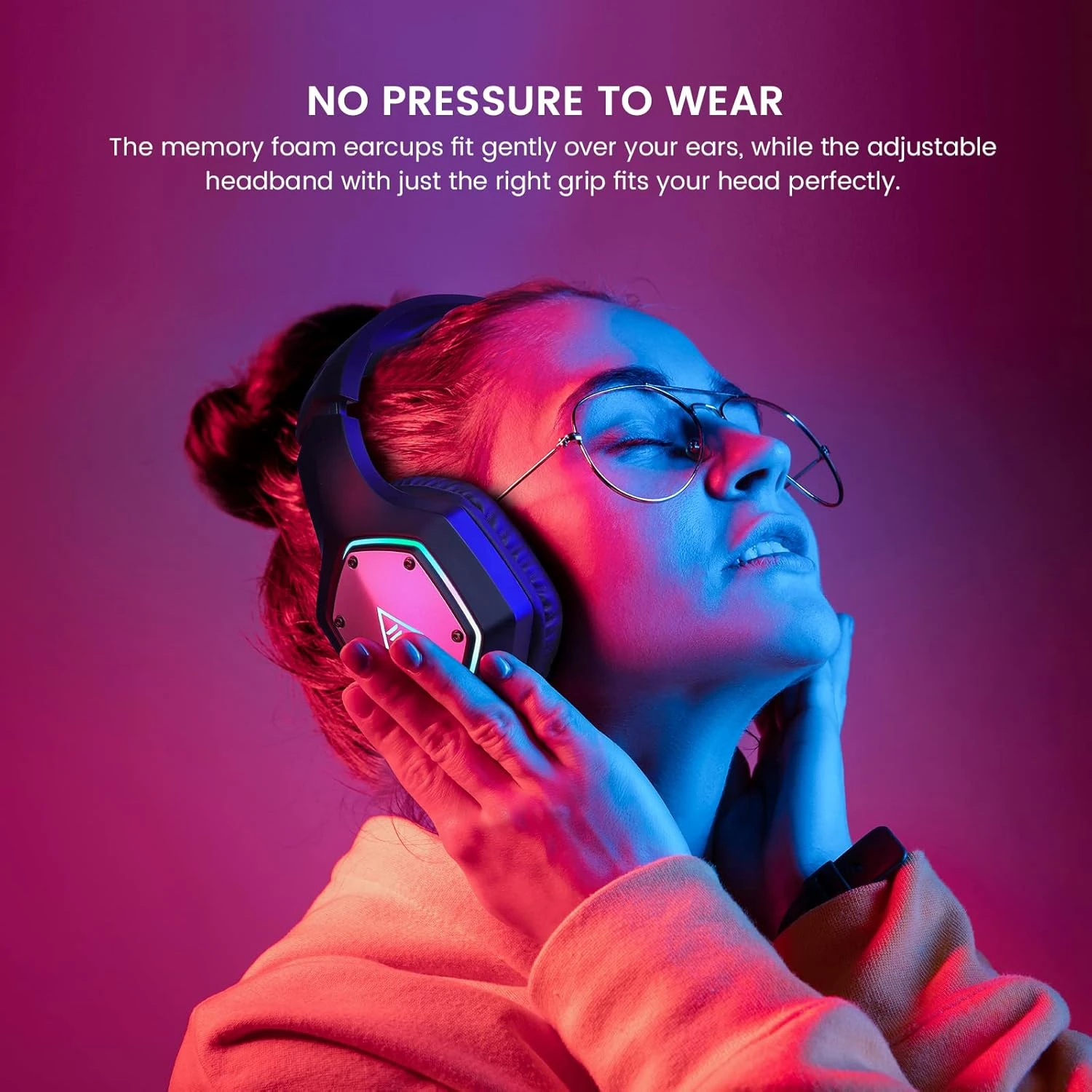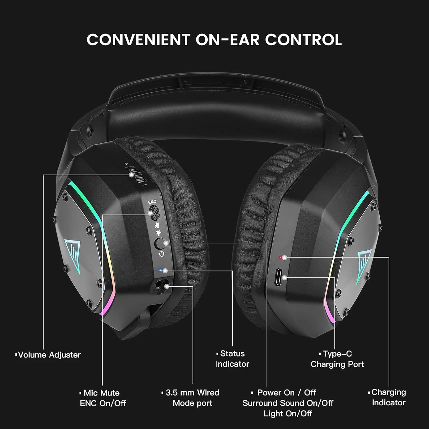 - Dazzlight RGB: Elevate your gaming experience with vibrant RGB lighting that immerses you in a stunning visual atmosphere. The colorful RGB lighting sets the perfect mood for any game, enhancing your focus and intensity. With the one-key switch, you can easily control to turn on/off . Get ready to dominate your opponents in style with the Dazzlight RGB gaming headset!