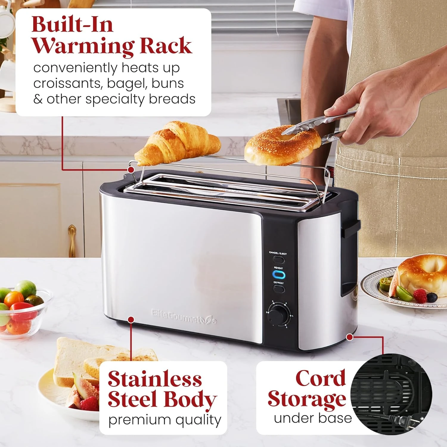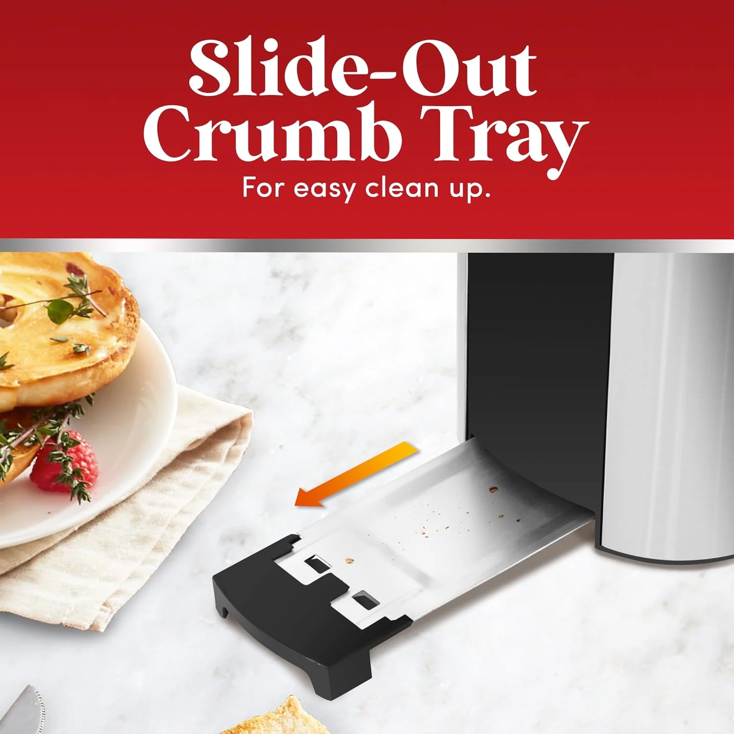 - EXTRA WIDE TOASTING SLOTS to fit extra thick slices of bread products such as Texas Toast, bagels and specialty breads.