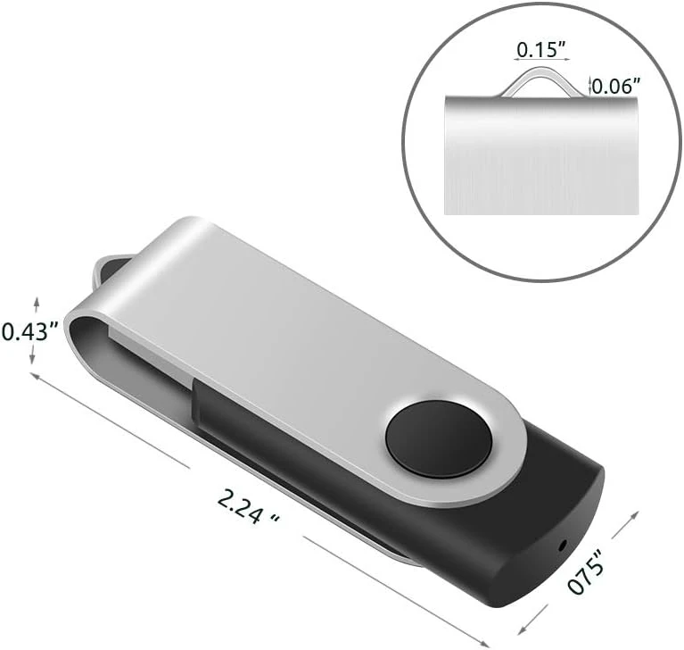 - Capless, foldable, swivel design; silver metal piece suitable for stickers