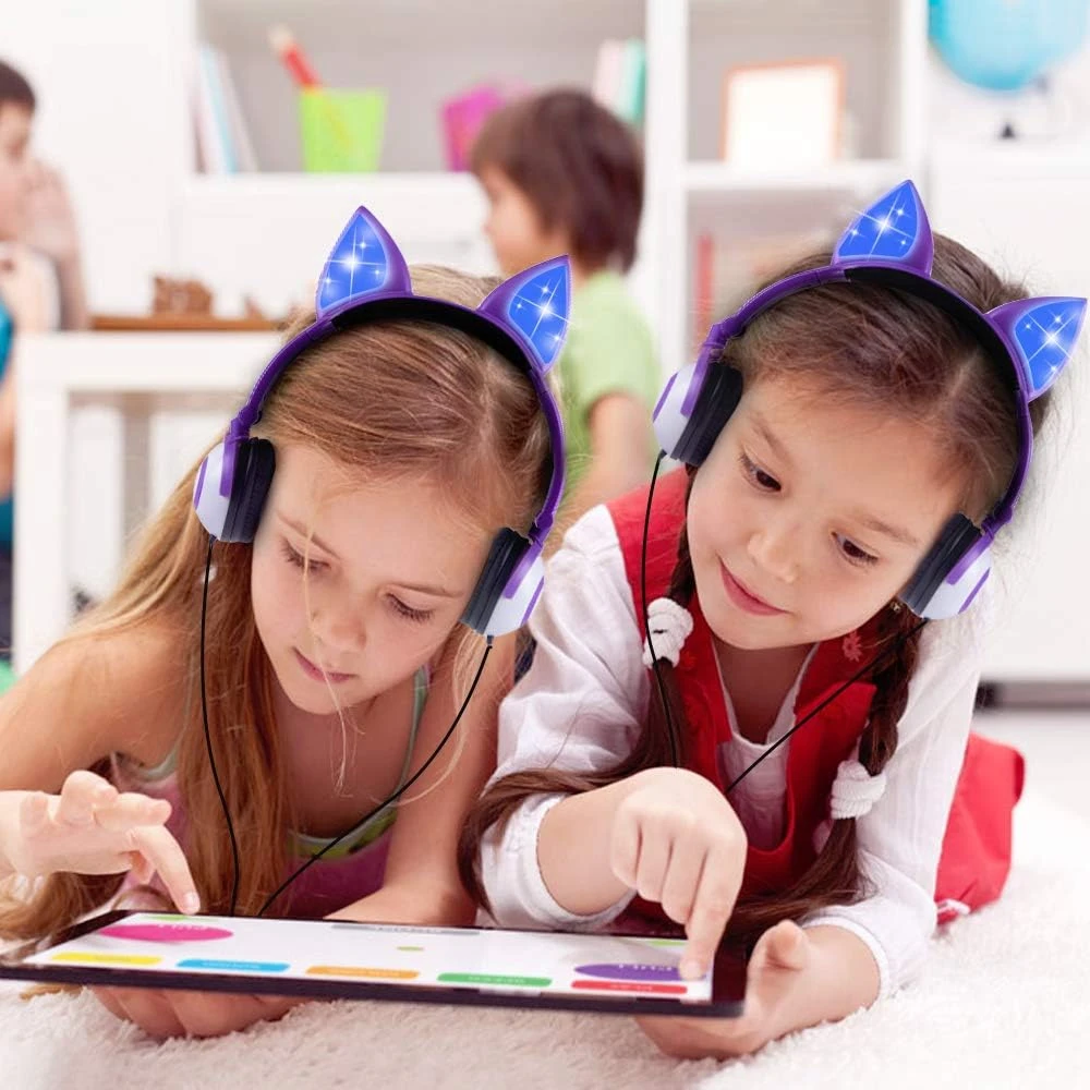 - [ Perfect Gift For Kids ] Playful Cat-Inspired Design Headphones for children, With LED Light Up. And Whether as a gift for children, or children online classes and daily carry, it is a better choice.