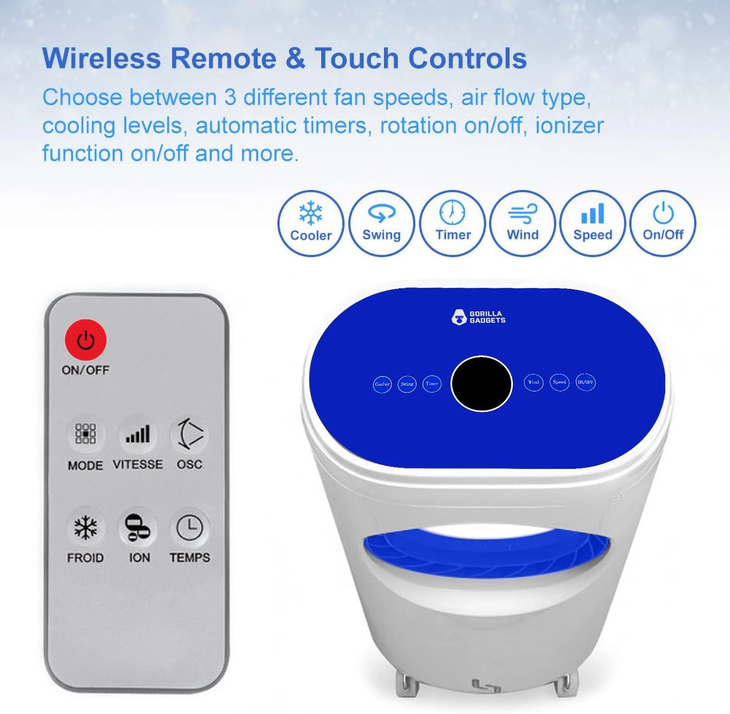 - 🧊 Touch Controls & Wireless Remote: The simple controls that are accessible from the top let you control settings like cooling type, rotation, timer, and wind speeds. The included wireless remote can access all the same settings up to 30 feet away.