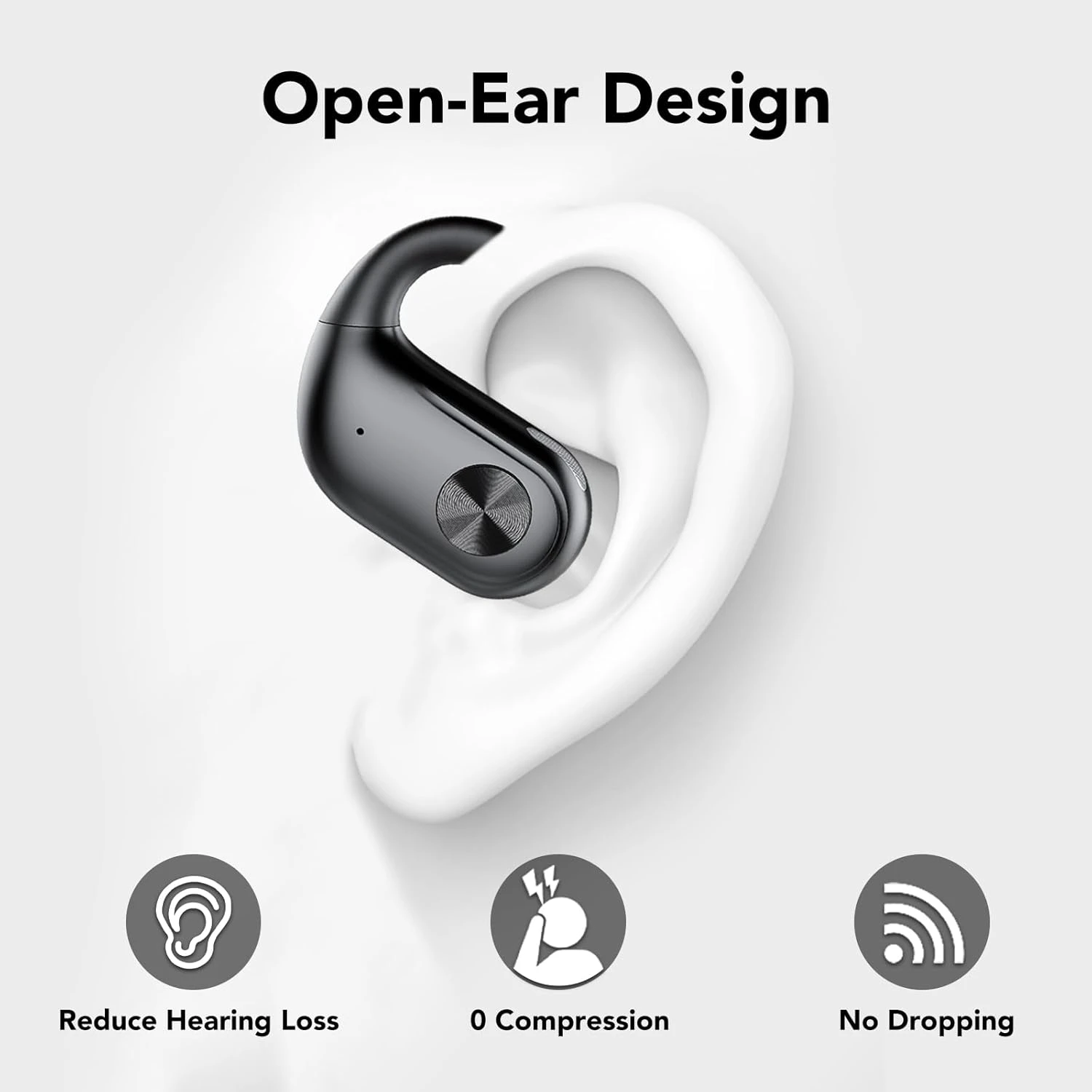 - True Open-Ear Design Headphones: With a new in-ear design, it doesn’t block the ear canal and can be worn comfortably on the ear without pain all day long. And reduce hearing loss, avoid ear canal infection. Suitable for ears of different sizes.
