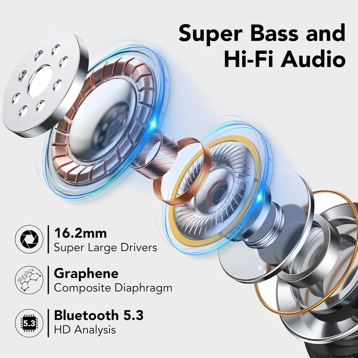 - Enhanced bass by 45%: The speaker is equipped with a 16.2mm super large graphene composite diaphragm (3 times of other wireless earbuds), and uses the exclusive bass+ bass enhancement technology to maintain super strong bass and crisp vocals at any volume.