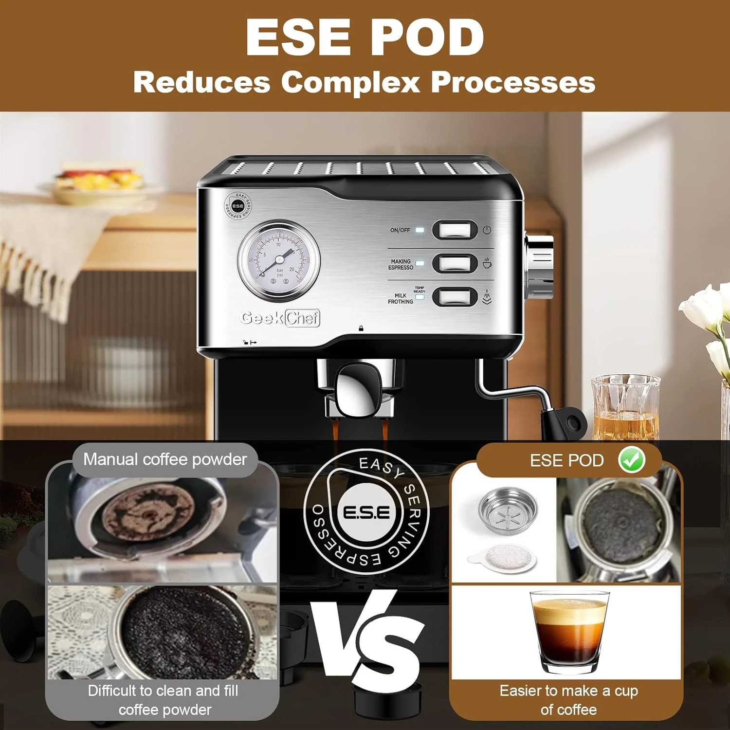 - ☕【BREWING WITH ESE POD 】The machine comes with a filter for ESE POD espresso capsules and compatibles. Note that some non ESE POD capsules might not work well with our machines.(machine excluding ESE POD).