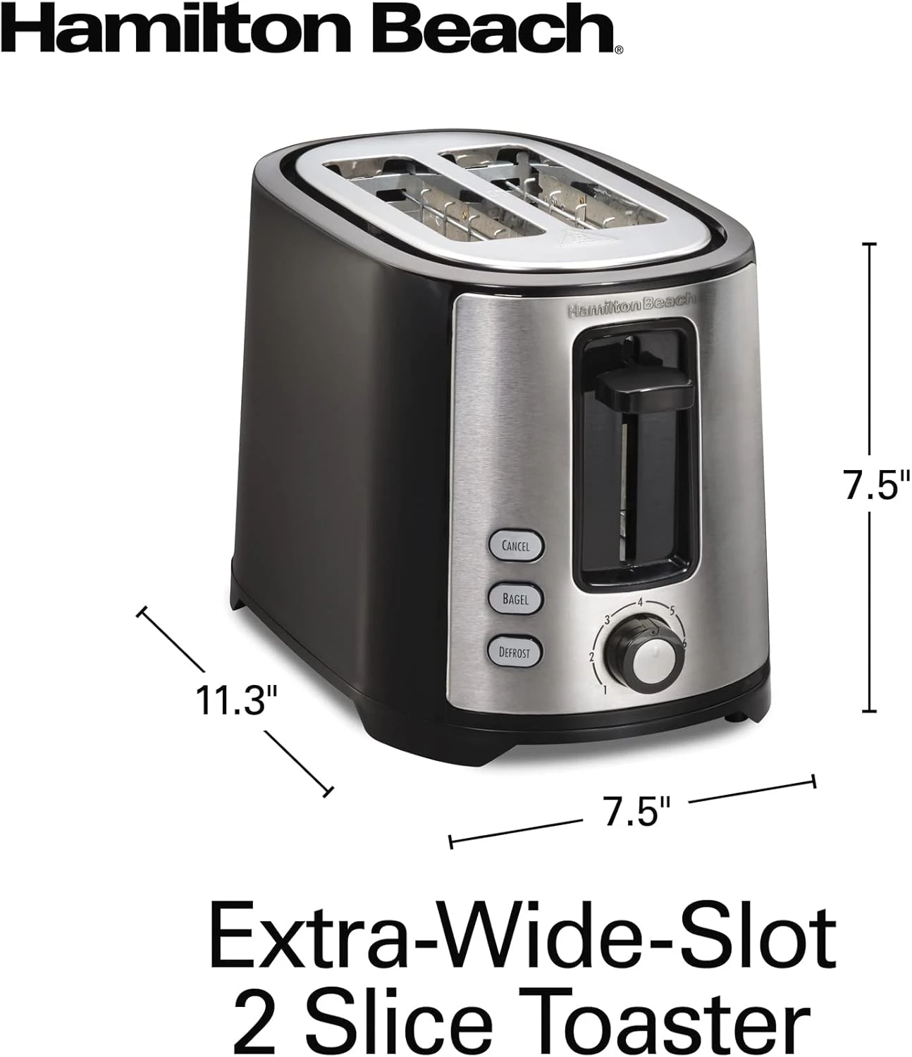 - Extra-wide slots: this 2-Slice toaster has extra-wide slots to fit Thick slices of artisan bread or Texas toast, bagels, or a variety of breakfast favorites.