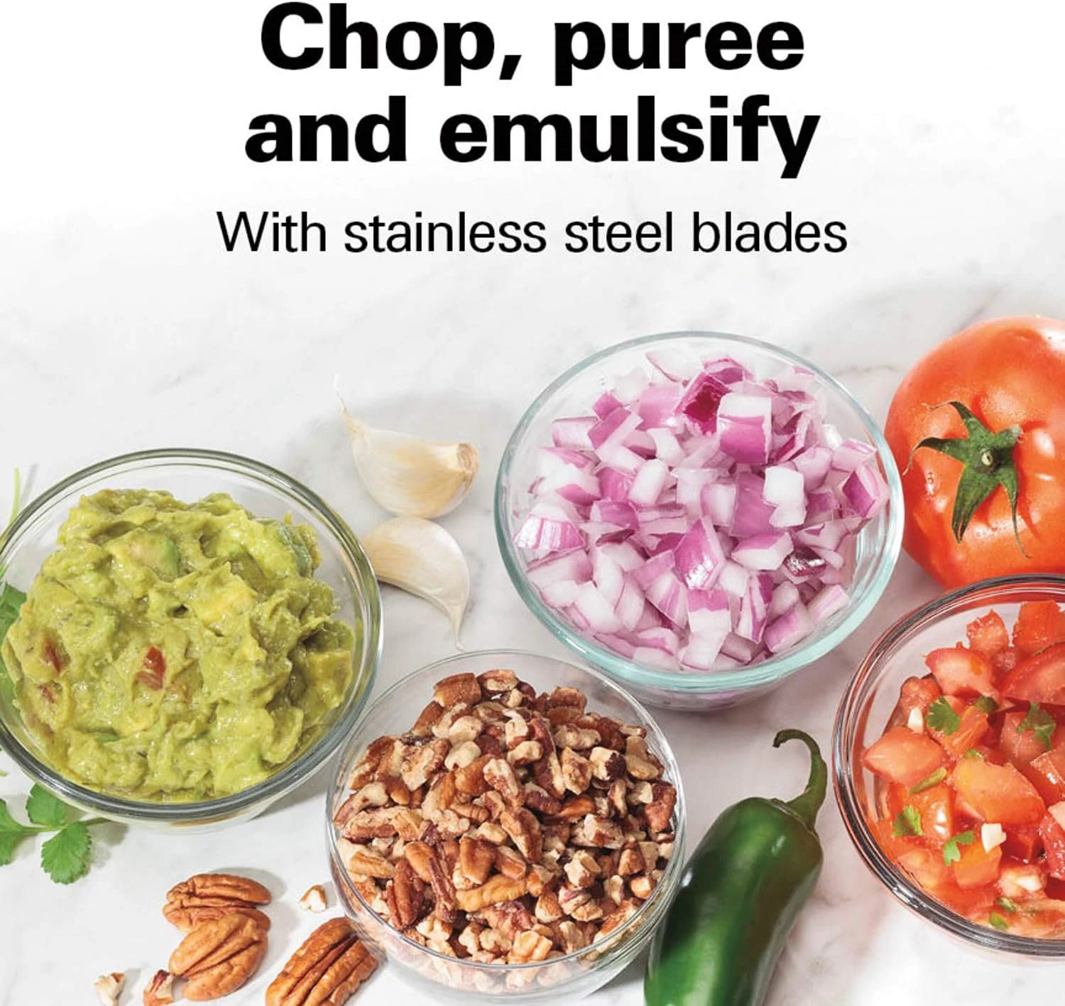 - Easy to clean: The bowl, lid and removable blades of the Hamilton Beach chopper are all dishwasher safe.
