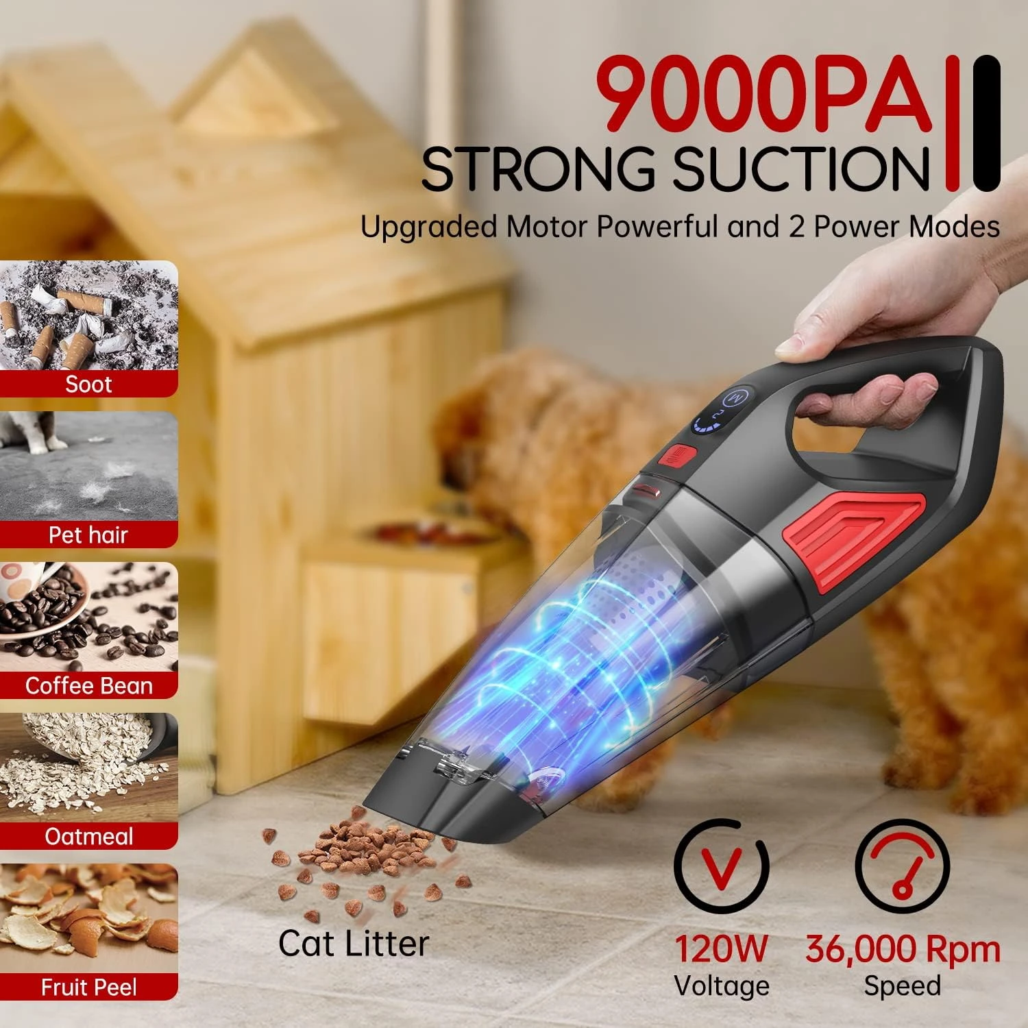 | Special Feature | 🏆9KPA suction power, more than enough for home/car cleaning🏆25 minutes run time, 3 hours fast charging🏆500ML large dust cup to avoid frequent dust dumping🏆High efficiency filtration system to prevent secondary air pollution🏆Safe and efficient power protection |