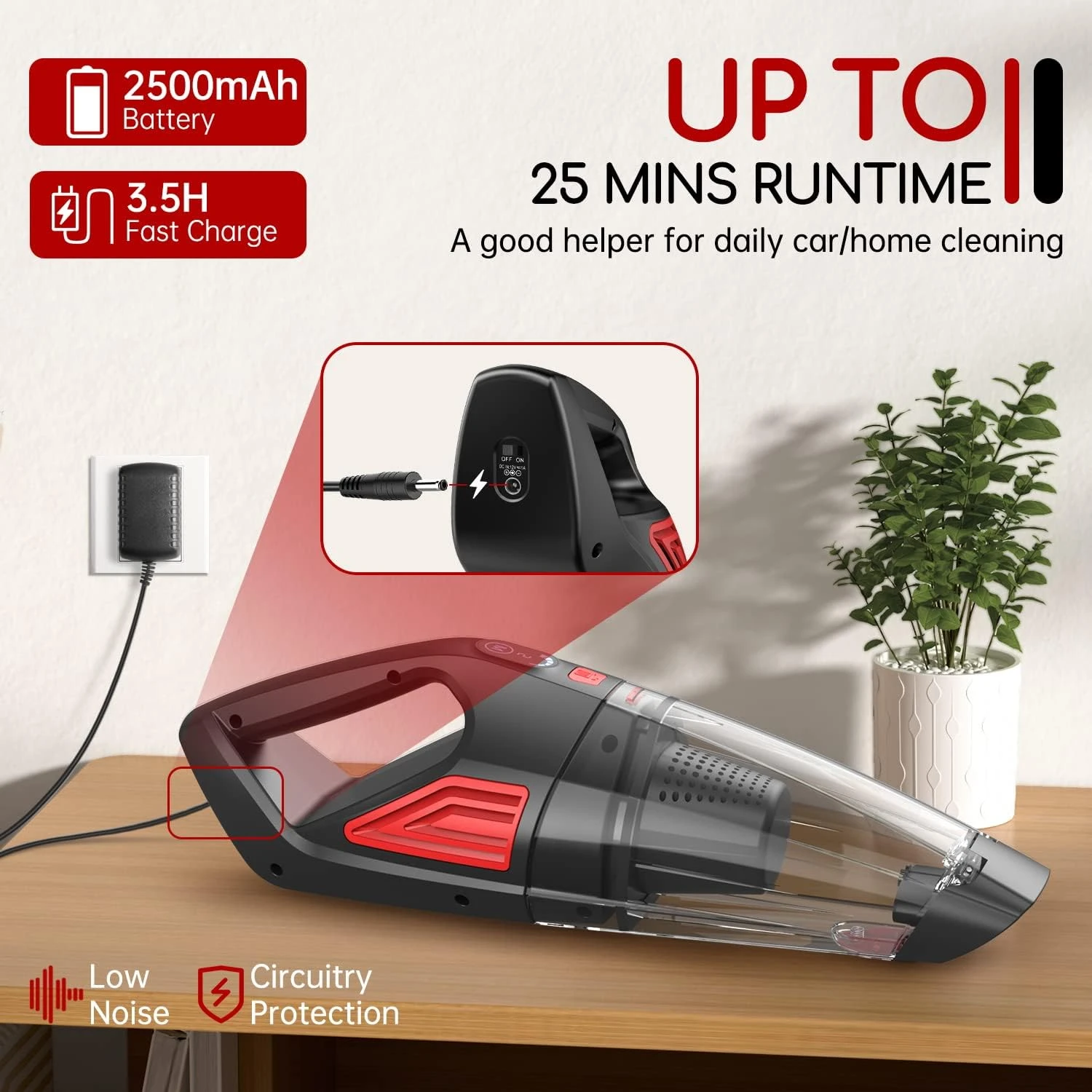- Long Battery Life, Durable Performance: This handheld vacuum cleaner is safety certified and equipped with overcharging protection, ensuring safety and reliability. After 3-4 hours of charging, it provides 25 minutes of continuous use. It enables continuous and efficient cleaning. The LED indicator also displays the battery status, allowing you to focus on cleaning without worrying about the battery running out quickly.