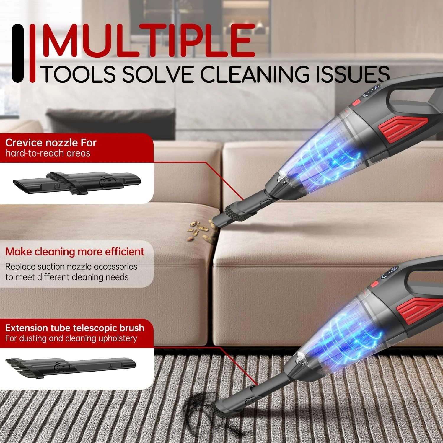 - Multi-Purpose Accessories: This mini vacuum cleaner comes with a 2-in-1 extendable crevice tool, making it easy to access narrow spaces such as sofa gaps/keyboard holes. It offers comprehensive cleaning capabilities, whether it’s hidden corners in your home or small spaces in your car. Weighing only 2.2 pounds, its lightweight design ensures minimal hand fatigue. No longer limited by the bulkiness and restrictions of traditional handheld vacuum, cleaning becomes more flexible and convenient.