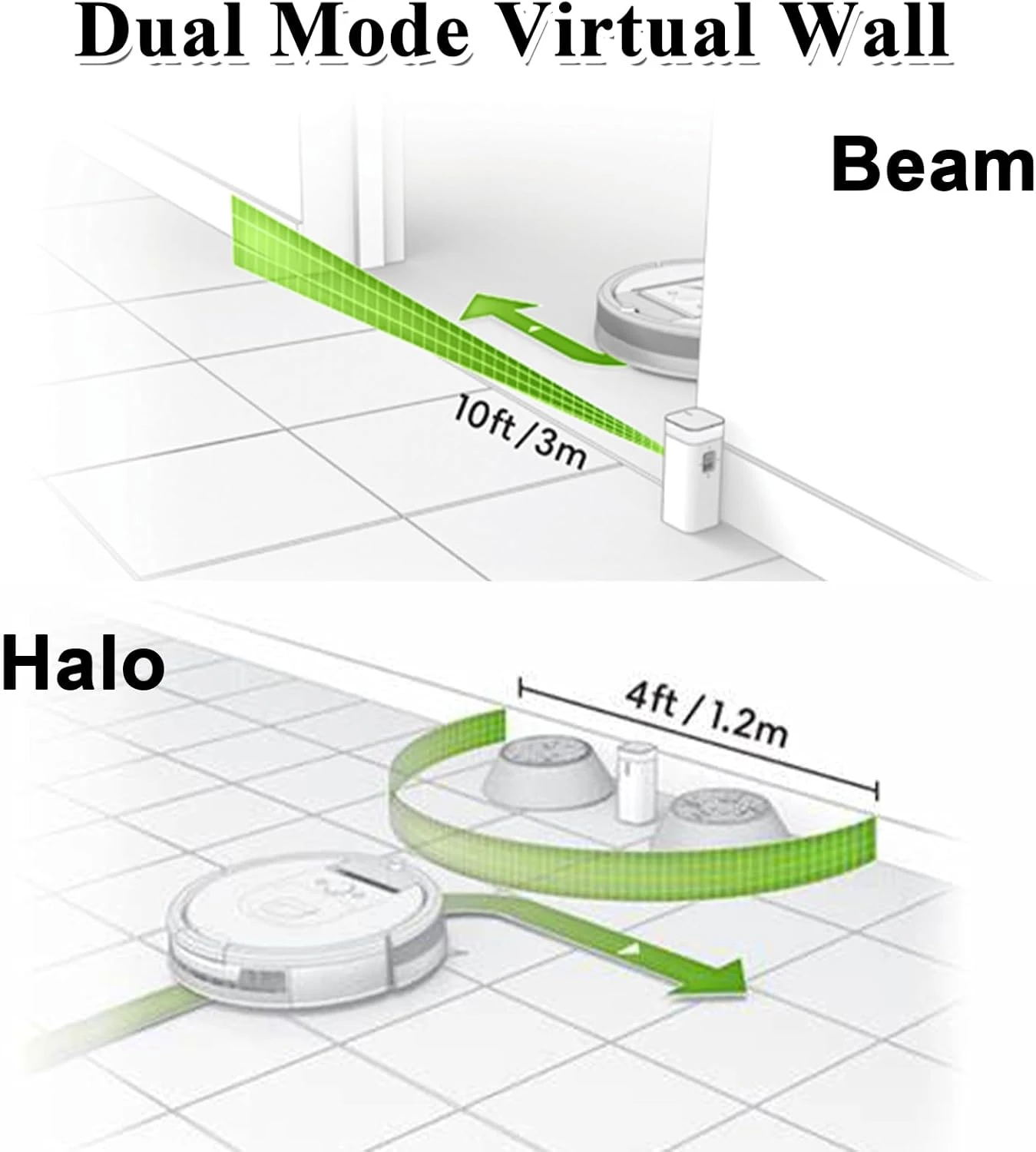 - 【New Barrier】:Dual model virtual wall barrier lets you better manage your robot cleaning. Keeps your robot in the rooms your want cleaned and Out of the ones you don’t.