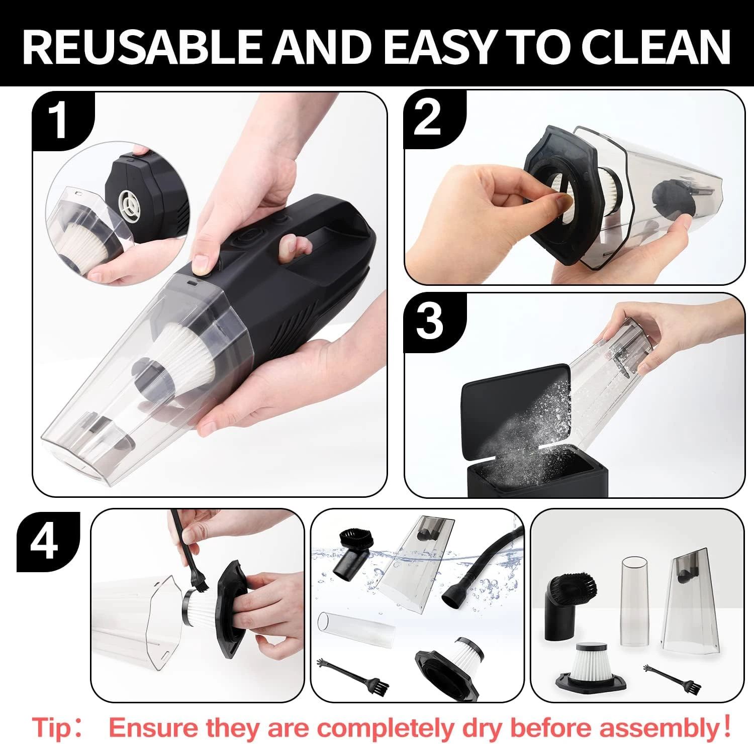 - 💡LED light. This vacuum handheld device has a bright LED light that efficiently helps you to clean at night or in a dark place. The detailed designs make the vacuum cleaner not only suitable for cars but also suitable for homes. 🎁Just bring this portable handheld vacuum cleaner to your home right now as the best gift for your family or your friends.