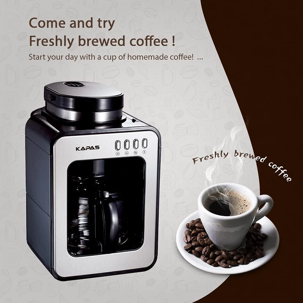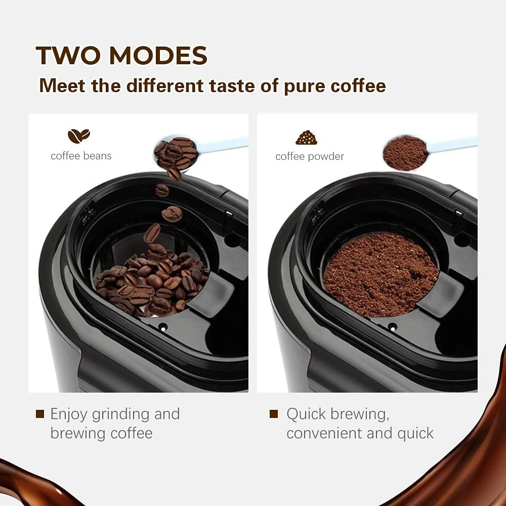 - The coffee machine is equipped with a burr grinder, so you can brew a cup of fresh coffee with coffee beans. The coffee beans are gathered and ground by the burr grinder, retain the full flavor of the beans, then the coffee powder will fall directly on the filter.