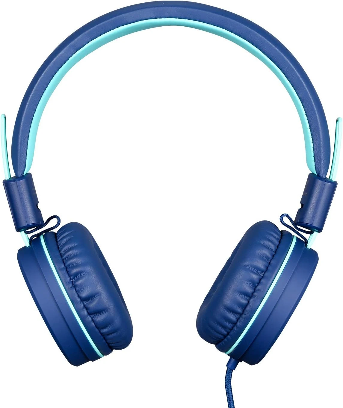 - On-ear headphones has padded soft cushions with a soft touch finish. Adjustable headband for a perfect fit, and a lightweight design for kids age 3 and up. Foldable design for a more compact and easy storage. The cord is a 5 feet long nylon braided cable. Designed for kids, girls, boys, children, toddlers, home/online school, training.
