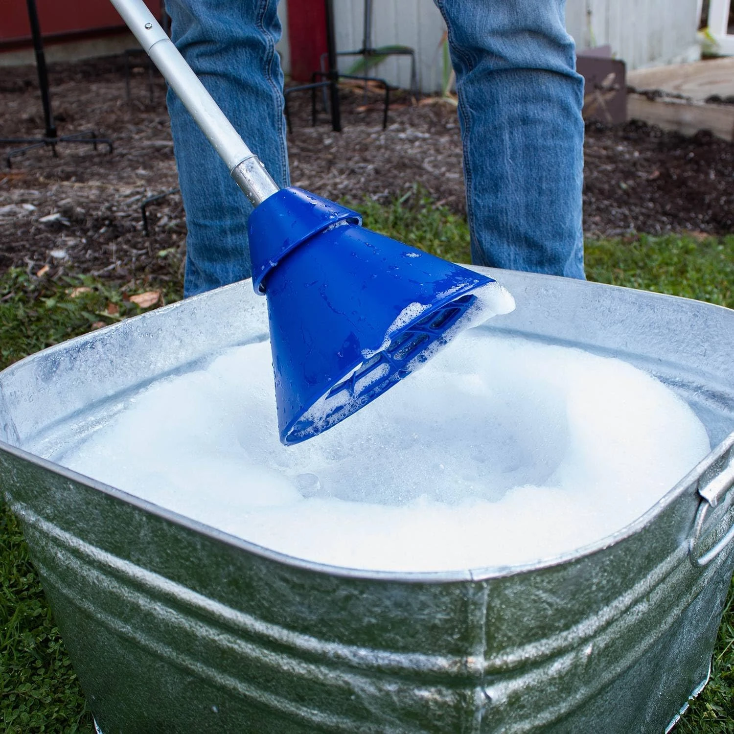 - Heavy-duty plastic agitator and splash guard, 3-piece aluminum collapsible handle with heavy duty metal threads and storage bag; 31.75″ high