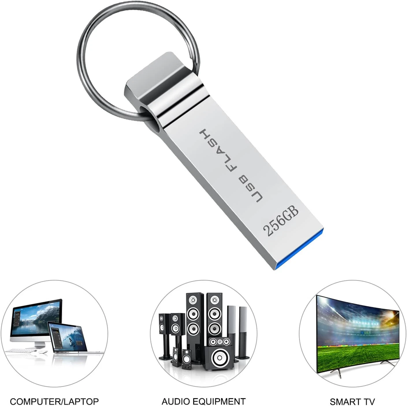 - 【Excellent compatibility】256GB high quality high capacity USB Stick, compatible with most USB ports. It supports almost all operating systems and is compatible with PCs, laptops, TVs, cars, audios and more.