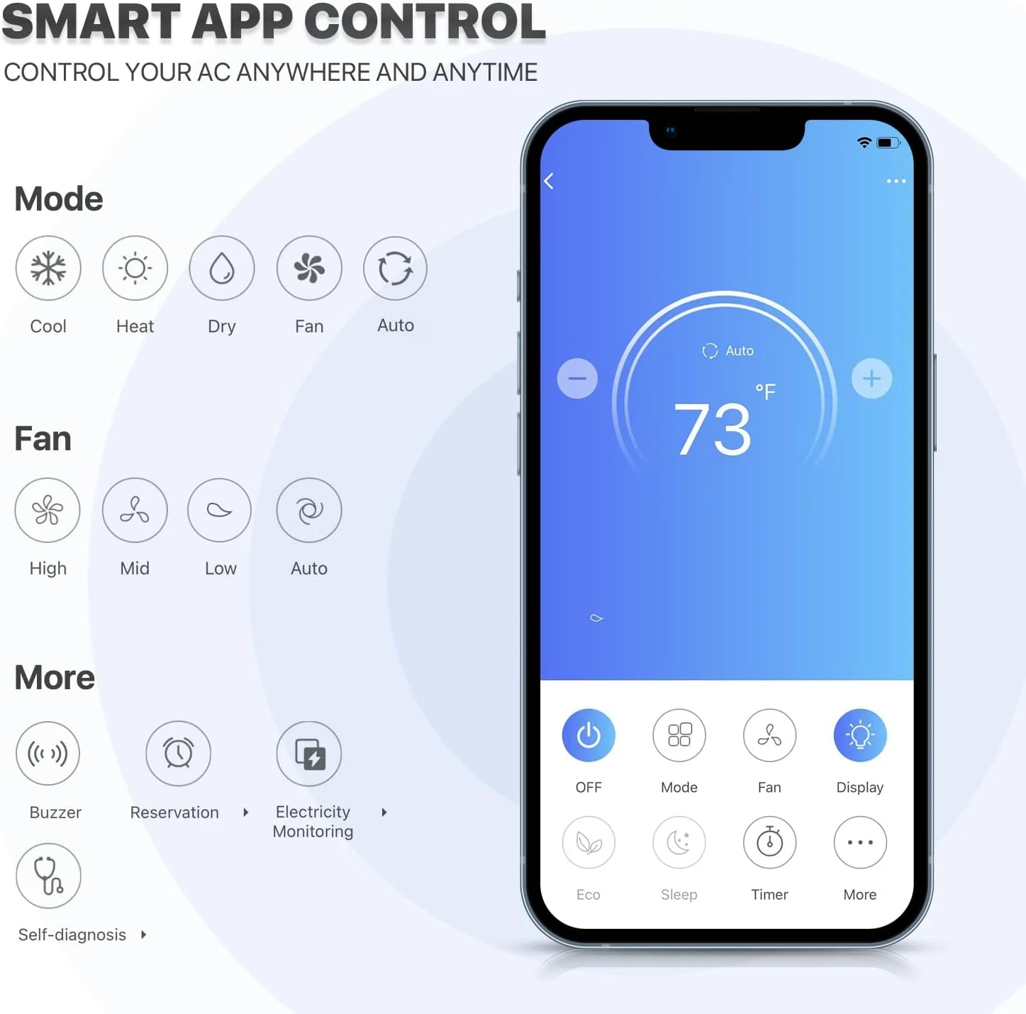 - Smart APP – Our split AC air conditioner are equipped with smart Wi-Fi connectivity, allowing you to control your AC remotely via a smartphone app like quiet mode, turbo mode, sleep mode and timer. This means you can come home to a perfectly cooled house every time.