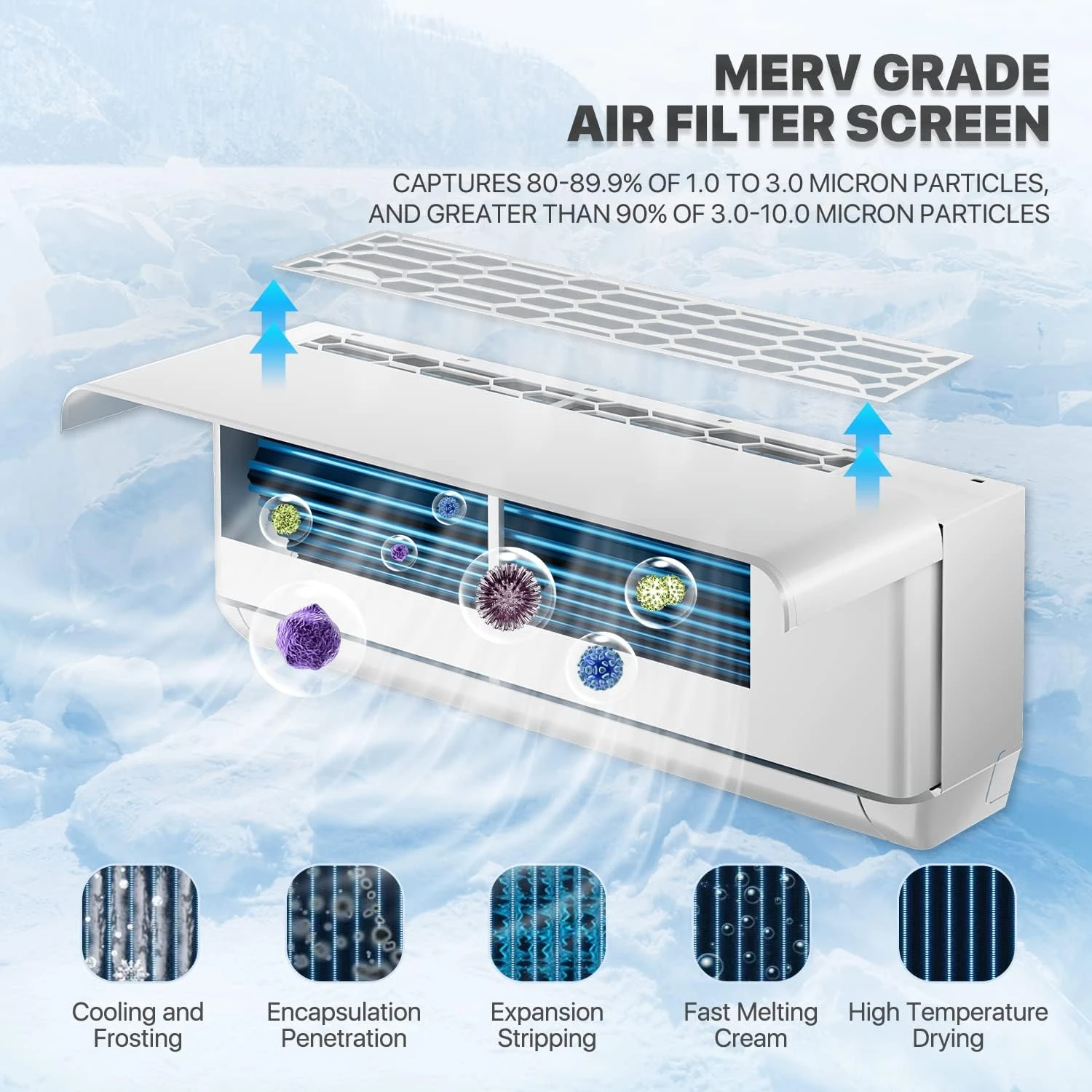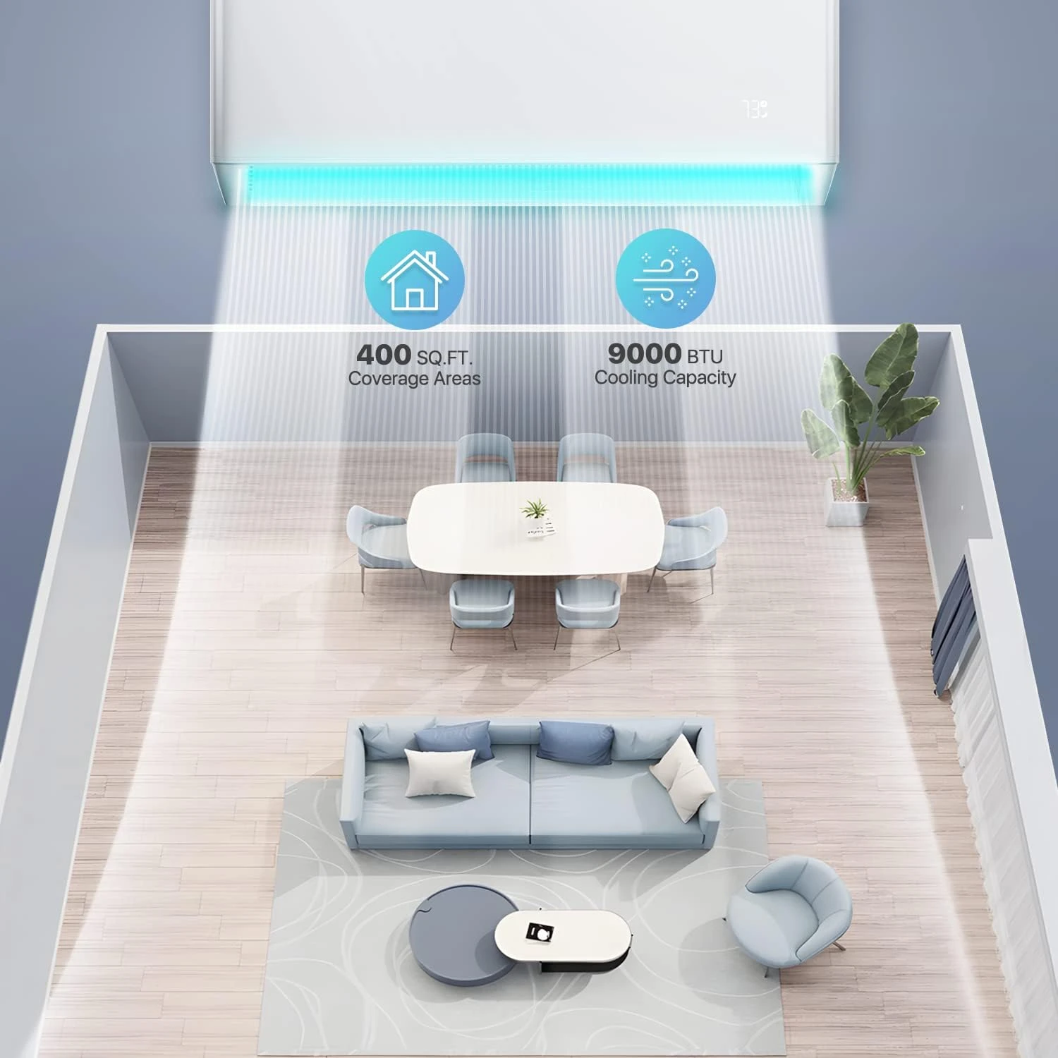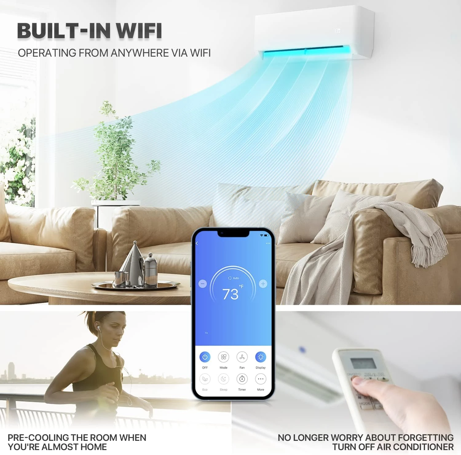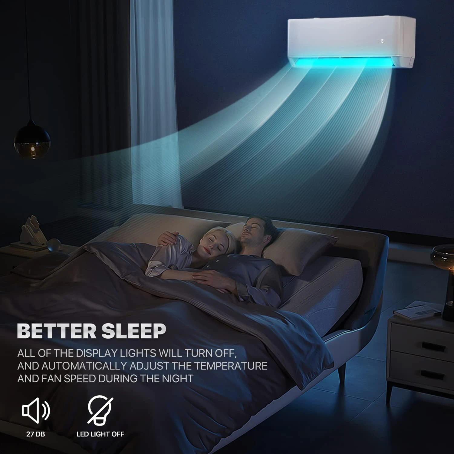 - Provides Heating and Cooling – This split-system AC unit has 8 working modes for you to choose from: Cool, Heat, Dry, Auto, Fan, Eco, Sleep, Turbo. Operation temp 61℉-88℉. In addition, it also comes with 7 available fan speeds to meet various needs.