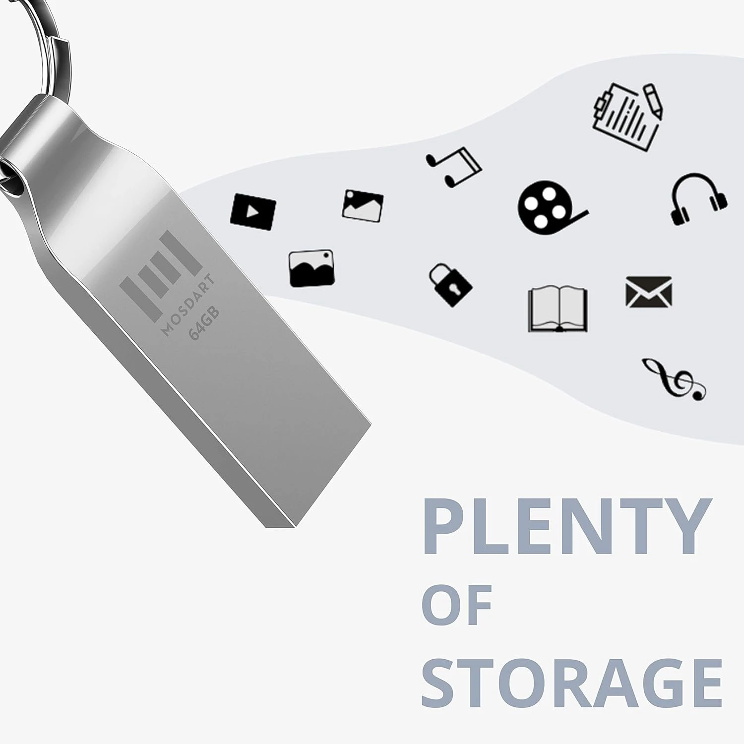 - Package And Default Format : 1 PCS MOSDART 64GB Metal USB 2.0 Flash Drive comes with keyring, packed in an eco-friendly paper box; Default Format: exFAT, you can reformat it to FAT32 or NTFS if needed.