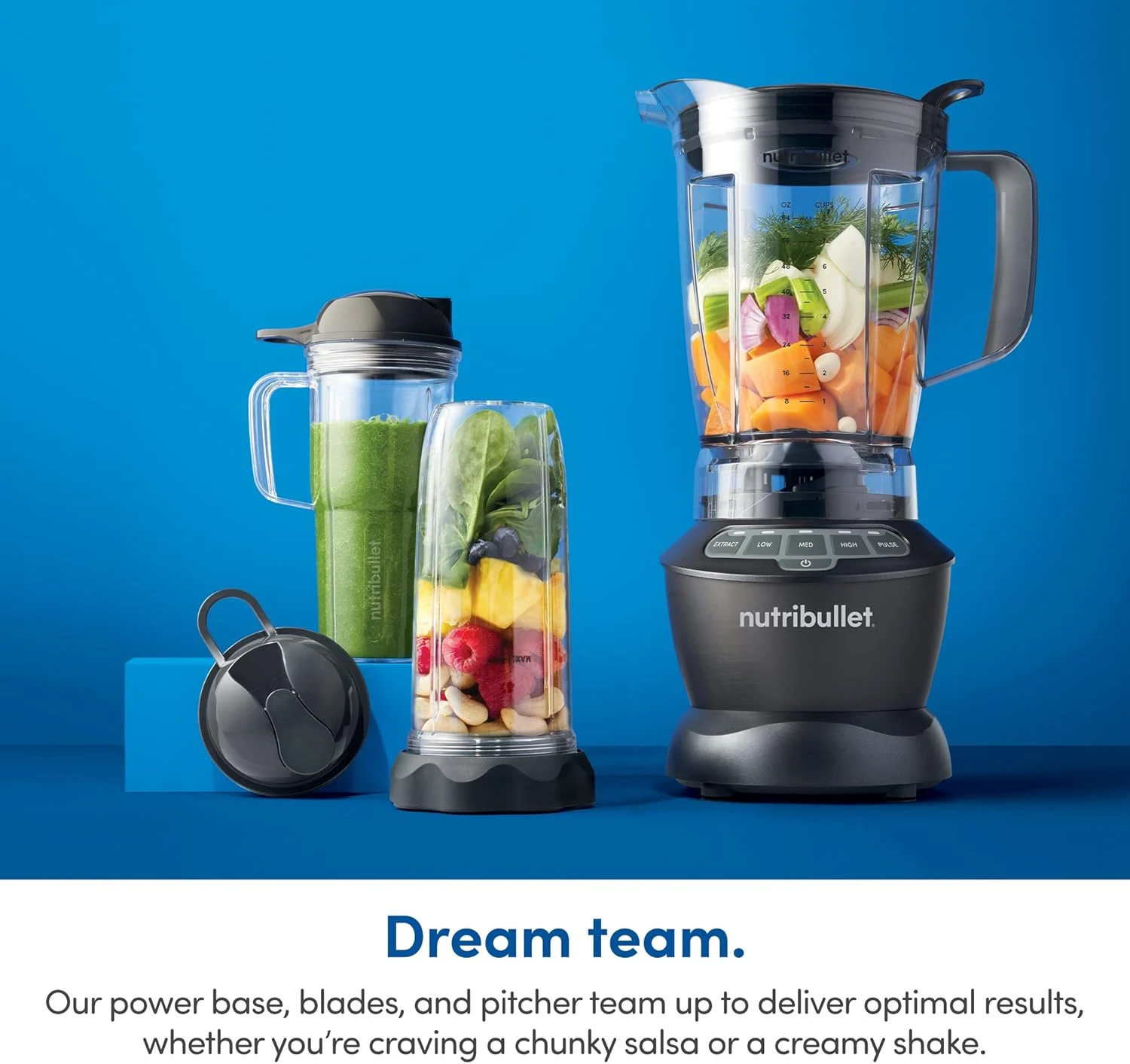 - NutriBullet blender combo will take your nutrition extraction to the next level with the versatility of both a multi-serving pitcher and a single serve cup.