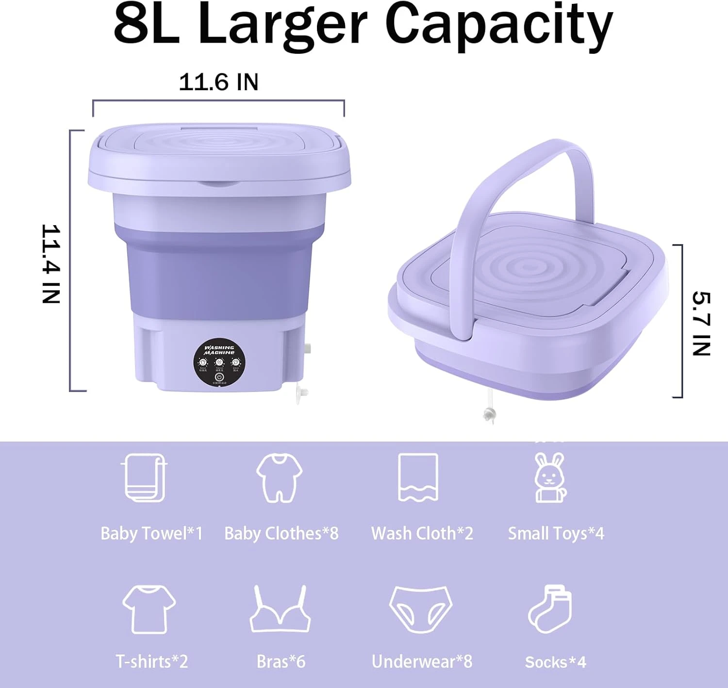 - 【Versatility】Mini Washing Machine Foldable can be used to wash a variety of items, including underwear, baby clothes, towels, socks, and delicates. They can also be used to clean small items like toys, pet diapers, and cleaning rags.