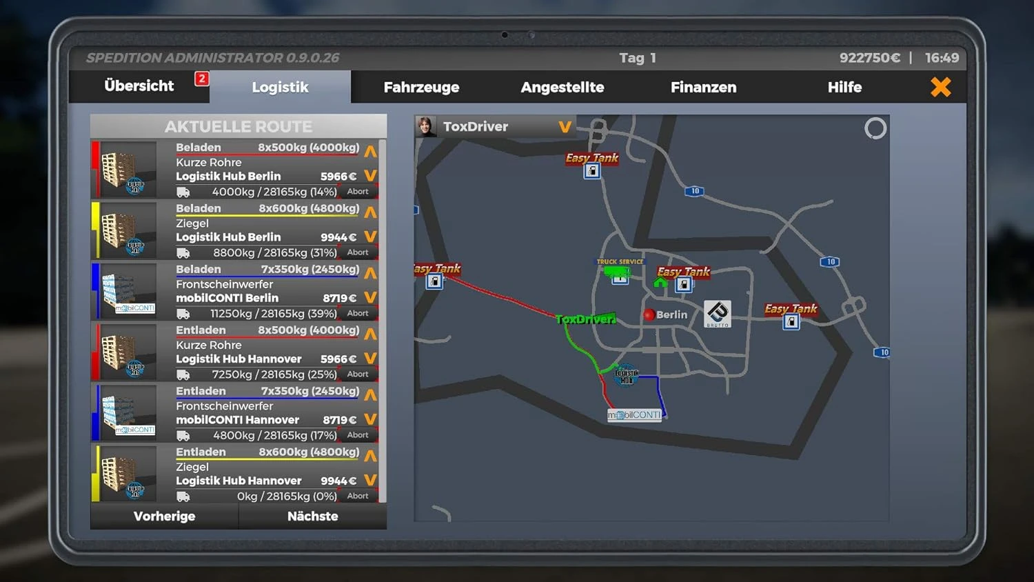 - create your own Company.complex route planning with combined routes and rest times.purchase trucks and trailers.hire drivers.leaving vehicles is possible and required
