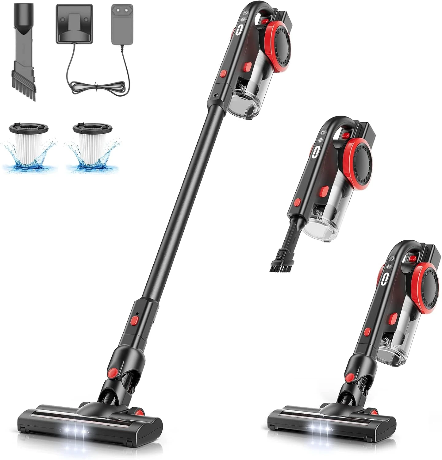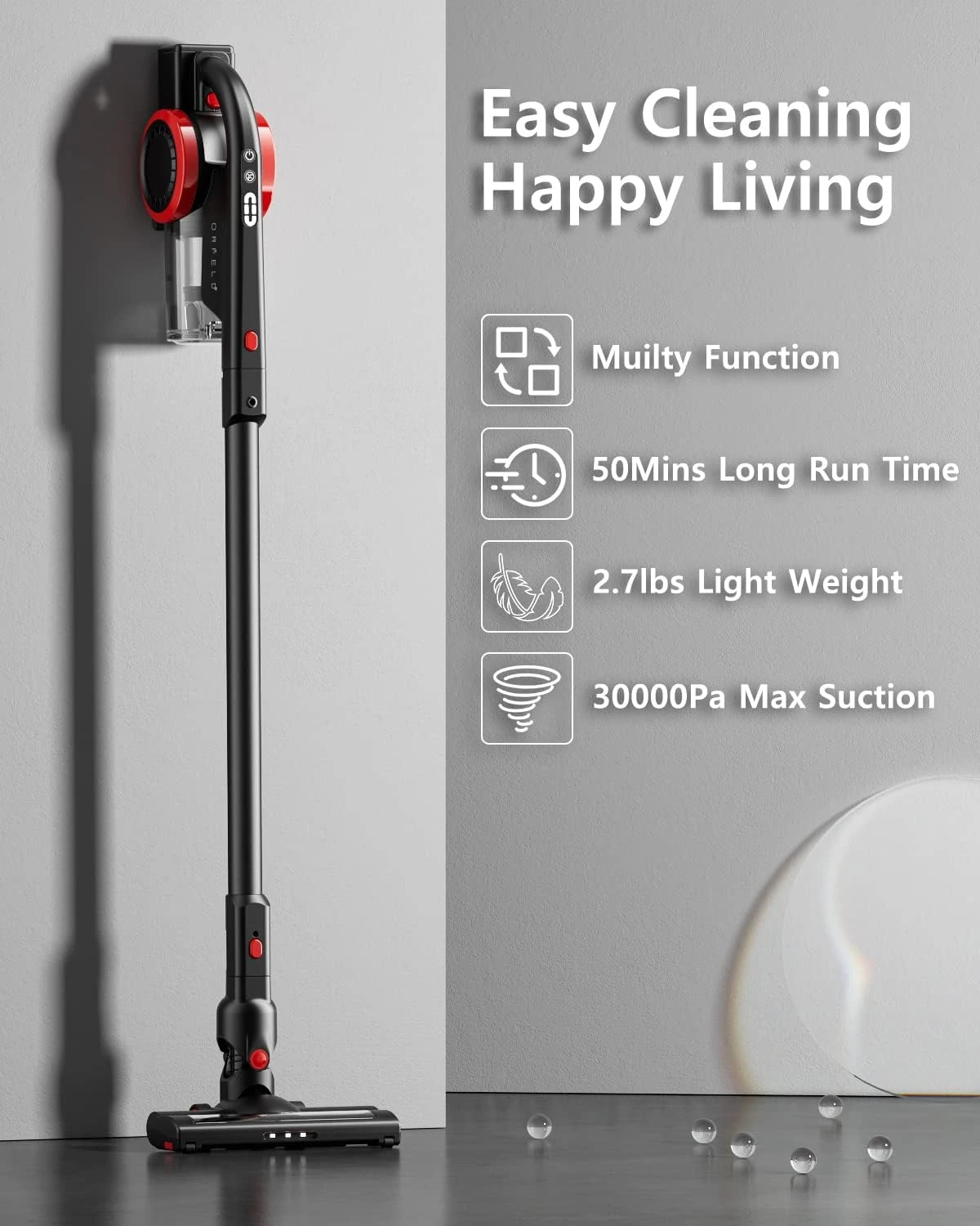 - ➤【50Mins Long Runtime & Fast Charging】The cordless stick vacuum has a 7*2200mAh rechargeable battery, 4-5H fast charging, delivers up to 18-50 minutes uninterrupted run time depending on your mode, ideal for large jobs and full house cleaning.