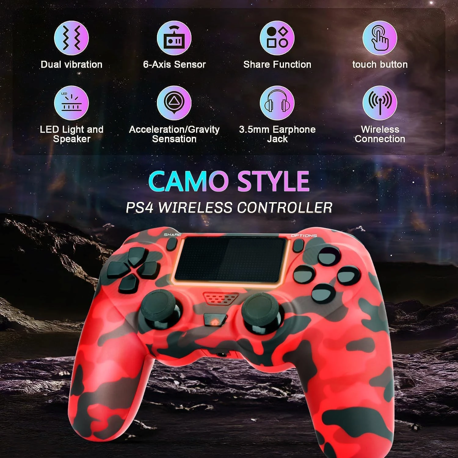 - 🎮【2023 New 2 PCS WIRELESS CONTROLLER】Stand out among all your gamer friends/rogue with our camouflage style PS-4 wireless controller. New upgrated in 2023, the ultimate gaming experience.