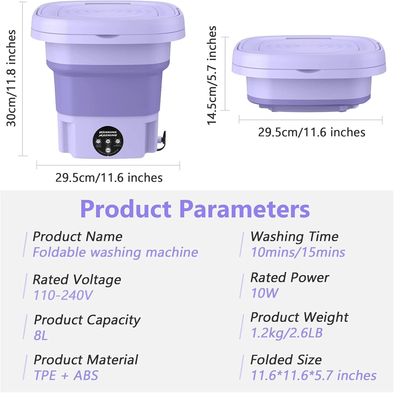 - 💦 Easy to Use & 24-hour Service: With its simple and intuitive controls, our mini foldable washing machine is easy to operate. Just plug it in, add water and detergent, and let it do the work for you! If you have any questions about the portable washing machine, please feel free to contact us, we will reply within 24 hours.