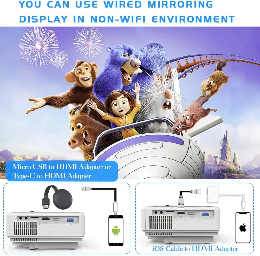 - [Convenient WiFi Connection] Connecting deivces with our wifi projector through wifi. 2023 we have updated TWO things to make it friendly user: (1) Updated the wifi connection steps, make it easier and more stable; (2) Updated the wifi connection speed, you can connect the wifi more quickly. So own our wifi projector, you can enjoy it anytime anywhere, it makes your life easier and happier.