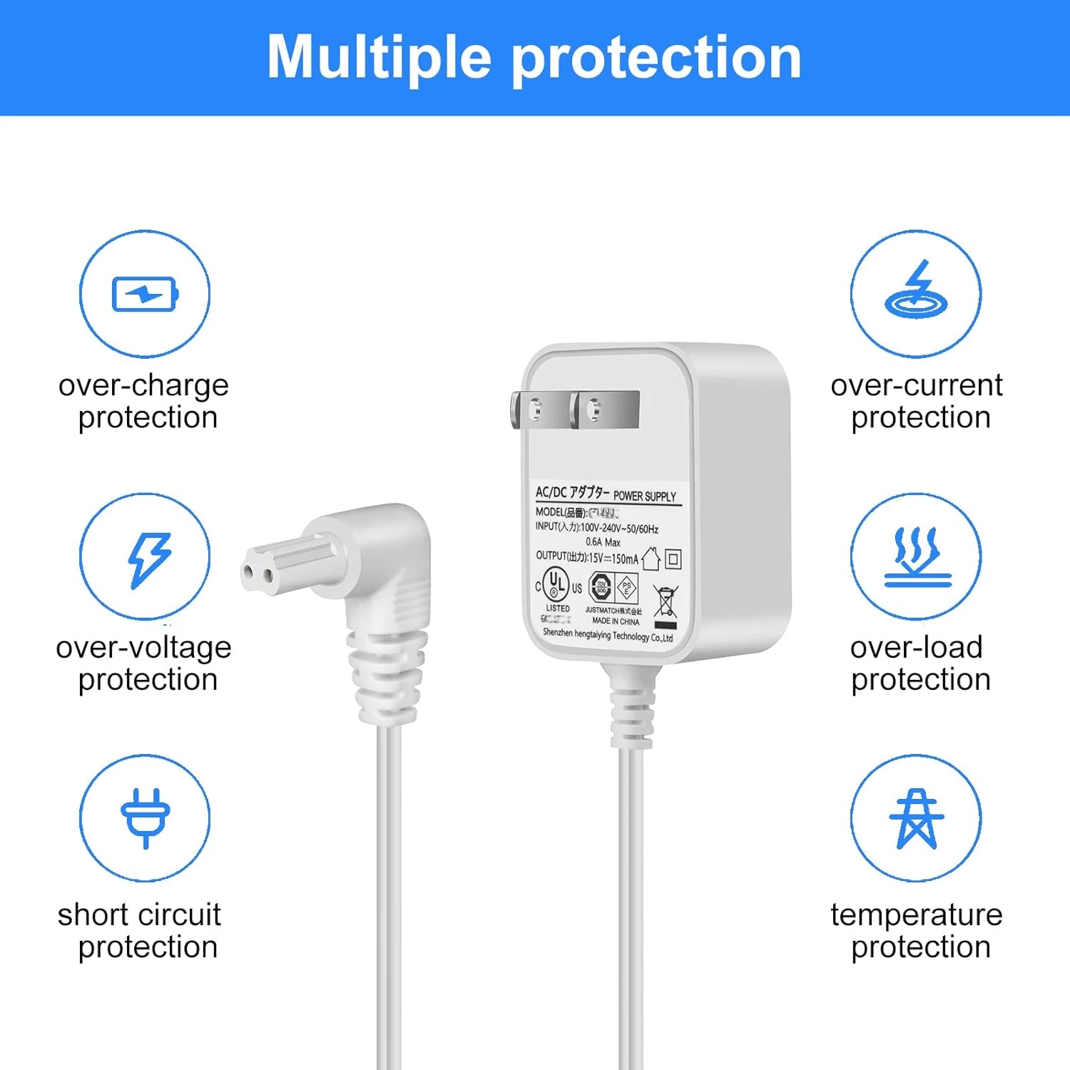 - Input: AC 100V-240V,50-60Hz . Output:DC15V 150mA UL FCC LISTED.