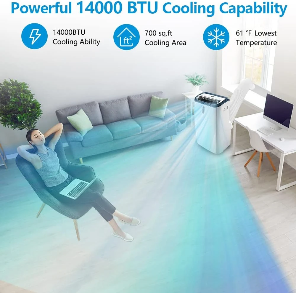 Rintuf 14000 BTU ASHRAE Portable Air Conditioner, Portable AC Cools To 700 Sq.ft Room, AC Unit For Cooling & Dehumi