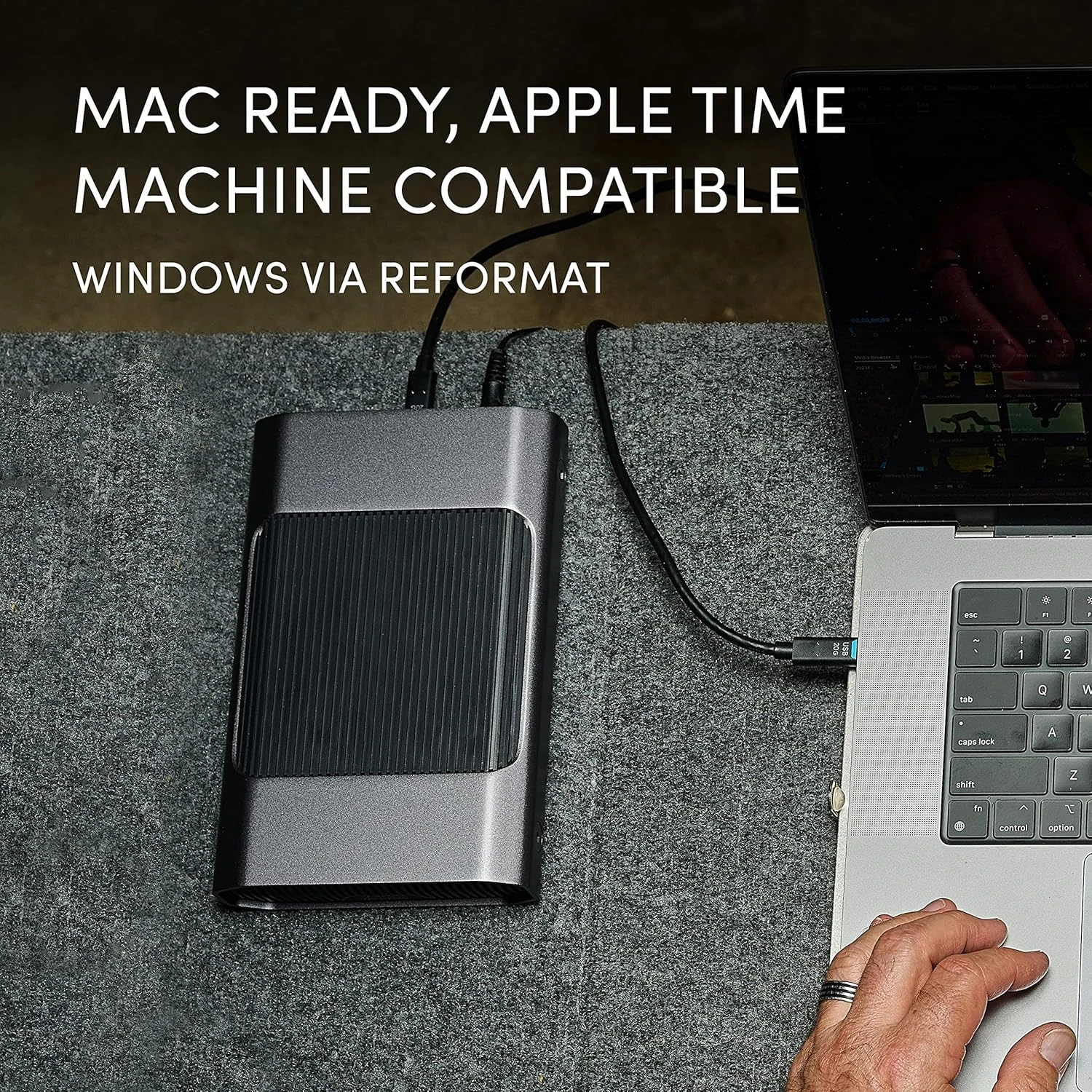 - Mac Ready, Apple Time Machine compatible; easily reformatted for Windows