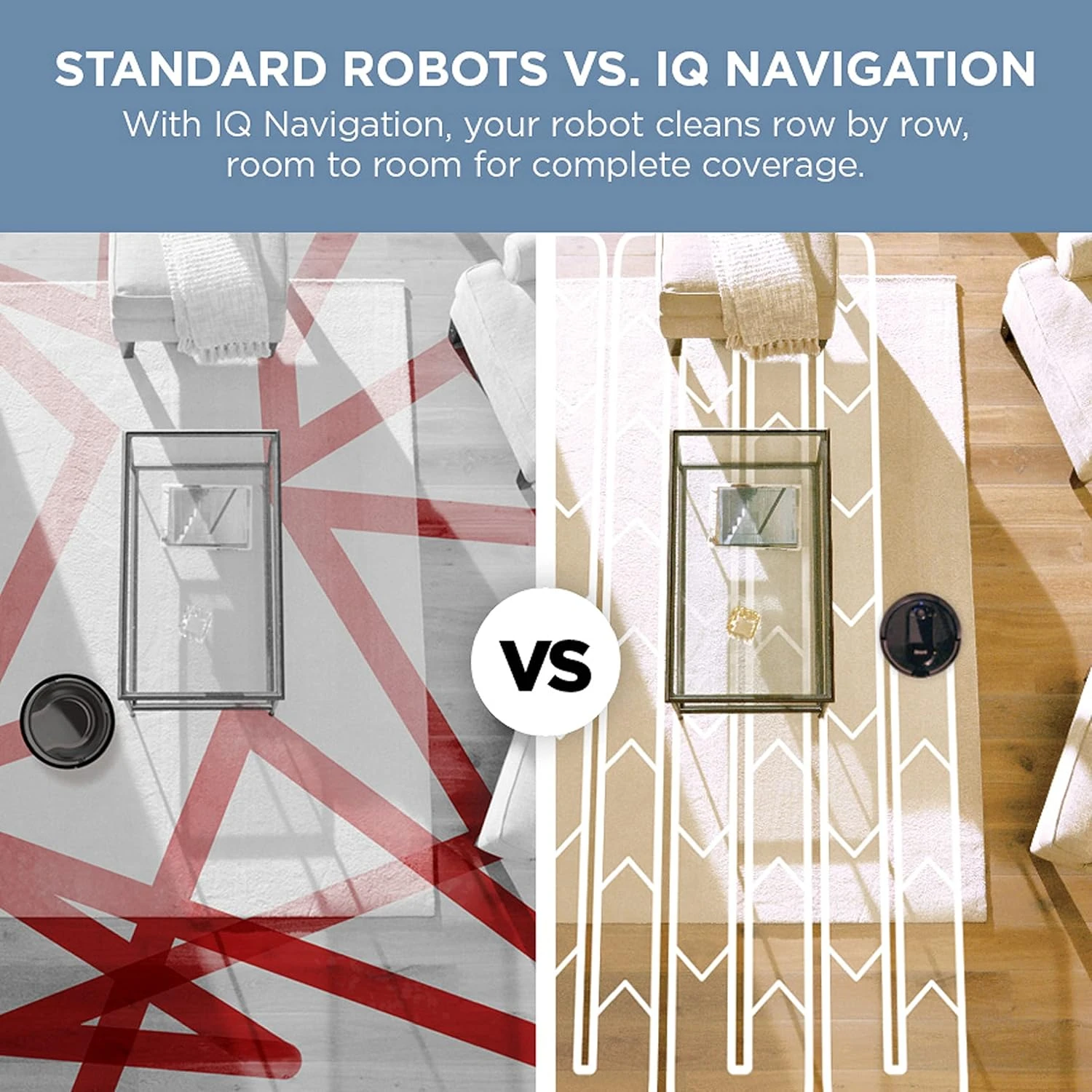 - ROW-BY-ROW CLEANING: Methodically cleans row by row, room to room for complete coverage.