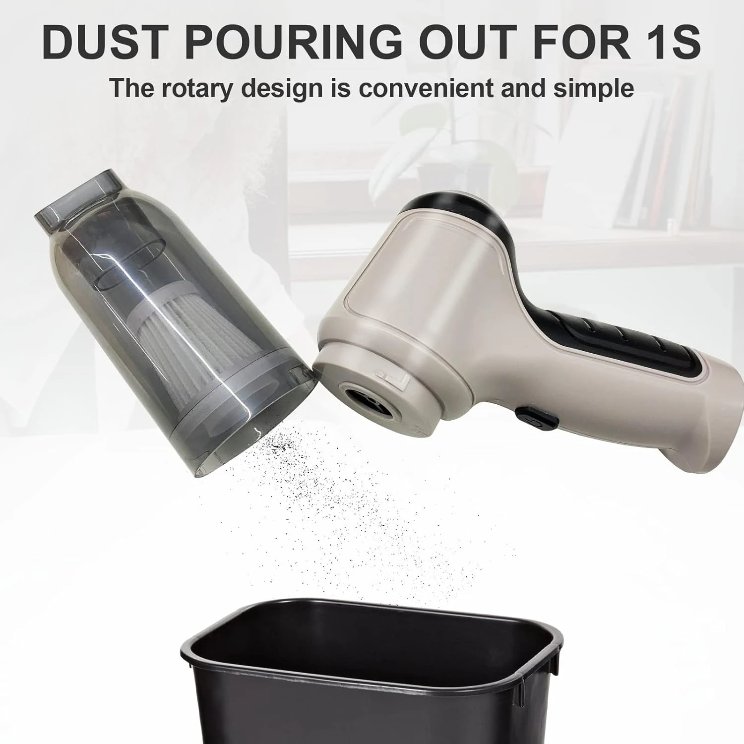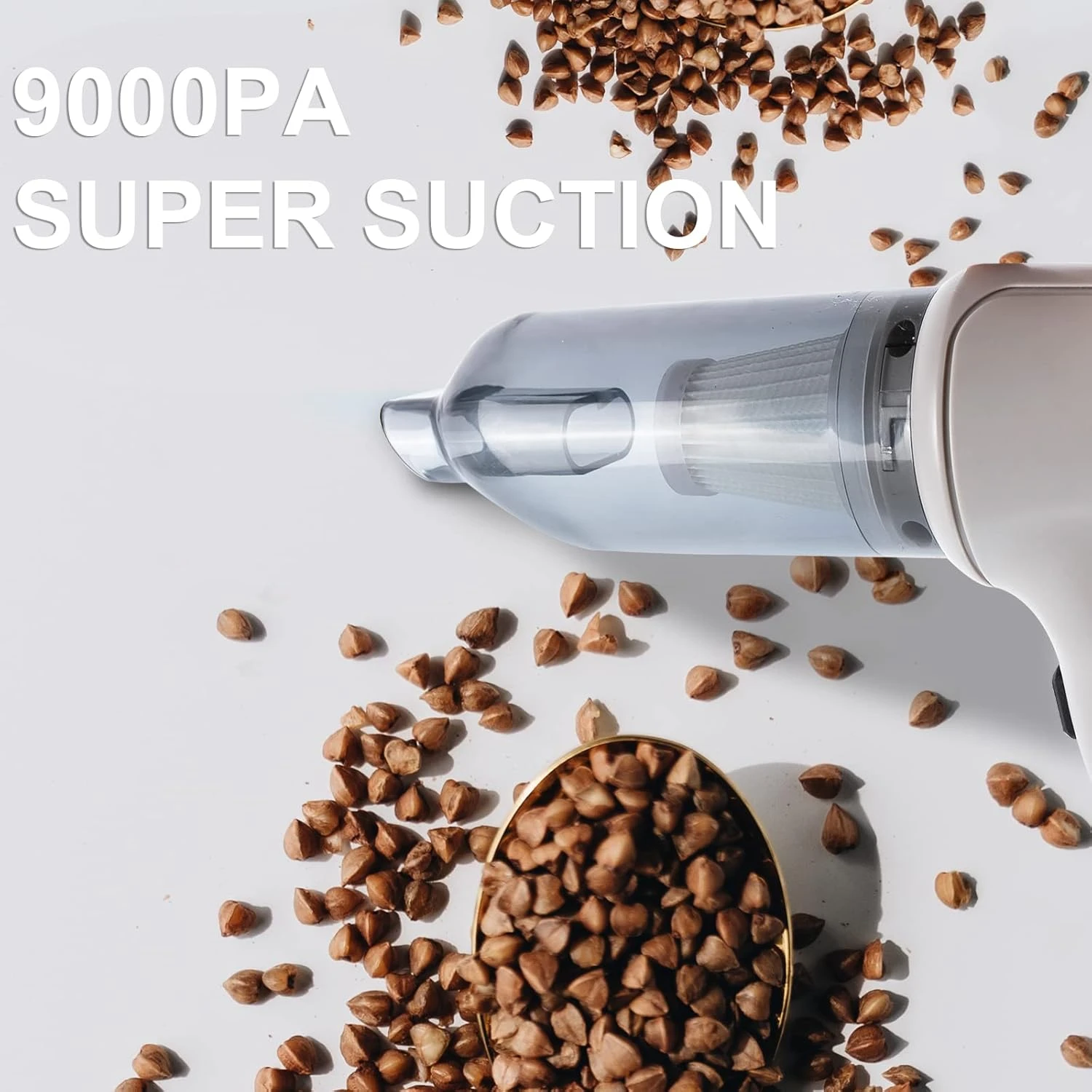 - Strong Suction: Wireless handheld vacuum cordless cleaner has a high power of 9000pa. the design of counter rotating double leaf structure and taper sealing technology greatly increases the suction, making your room clean in easy cleaning, and removing dust effortlessly.