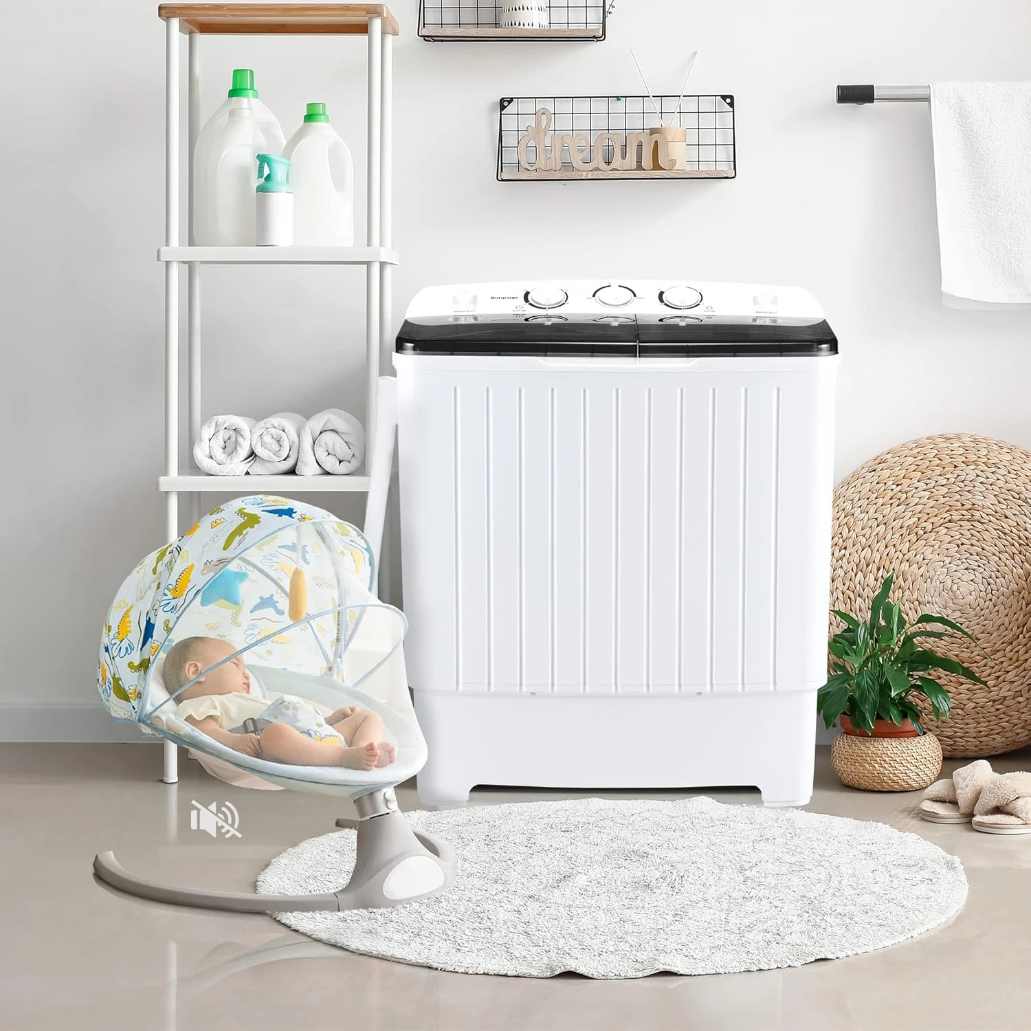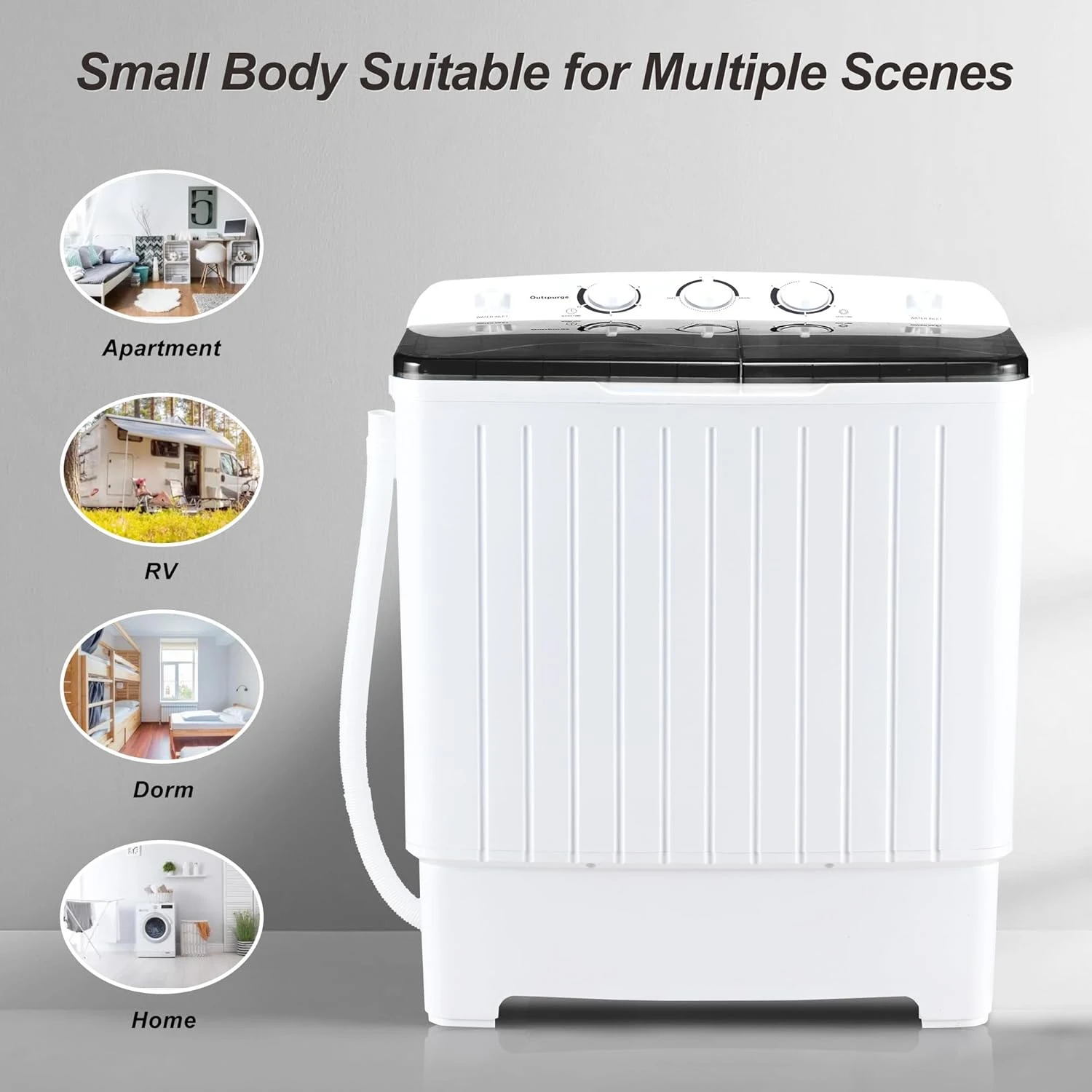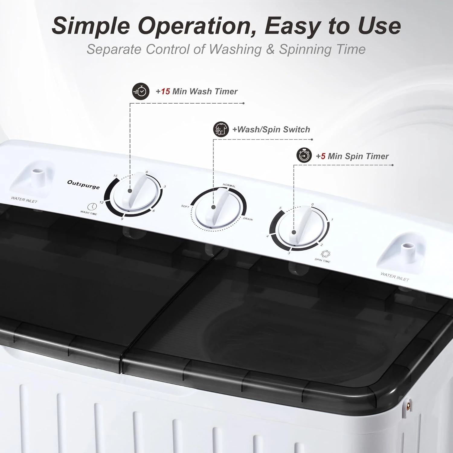 - 【Compact Twin Tub & 20LBS Large Capacity】The 2 In 1 washing Tub & drying Tub of the portable washing machine operate independently which can wash or spin separately. Gravity drainage for greater durability. 12 lbs washing capacity & 8 lbs spinning capacity of the washing machine can meet the needs of most families.