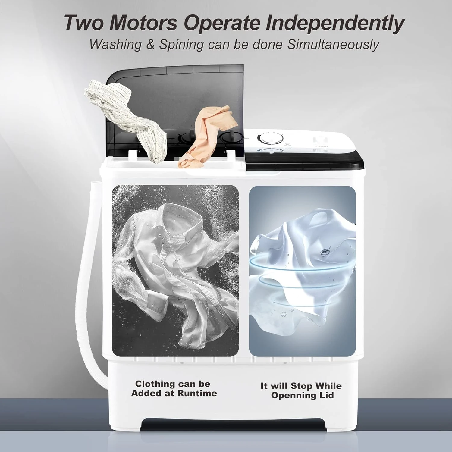 - 【Powerful Dual Motors】300W Wash Power &110W Spin Power make cleaning clothes easier and free your hands.When the dry tub of the clothes washing machines is working, you open the lid of the dry tub, it will immediately stop rotating for maximum protection.